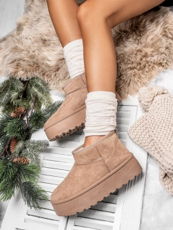 Damskie beżowe śniegowce zamszowe na grubej podeszwie TL242-63
