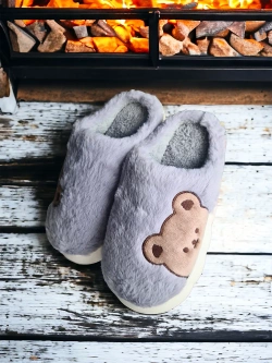 Damskie szare kapcie z misiem WS9028-26