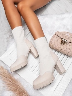 Damskie botki beżowe na obcasie A9602-8