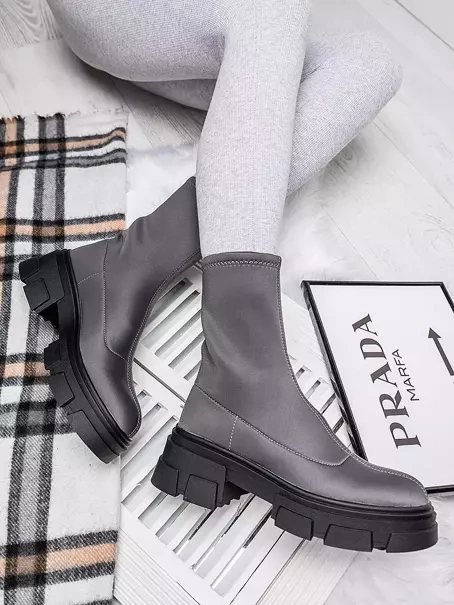Damskie botki grafitowe na grubej podeszwie TL235-26