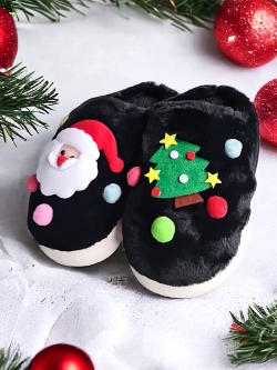 Damskie czarne kapcie świąteczne ze Świętym Mikołajem WS9036