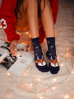 Skarpetki damskie świąteczne Reniferek 1283.009, Kolor Granatowy, Rozmiar 37-41