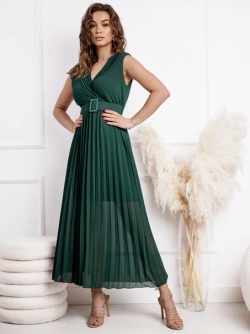 Długa plisowana sukienka z paskiem Milano