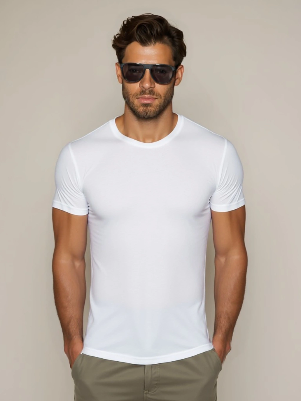 • Klasyczny, basicowy T-shirt męski. Produkt idealnie nadaje się na ciepłe dni i do codziennej stylizacji. Świetnie sprawdzi się z wierzchnim okryciem, np. marynarką, czy swetrem. Zapraszamy!