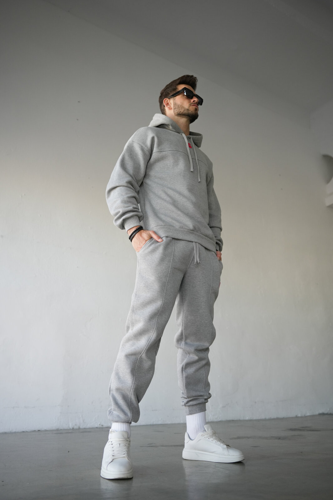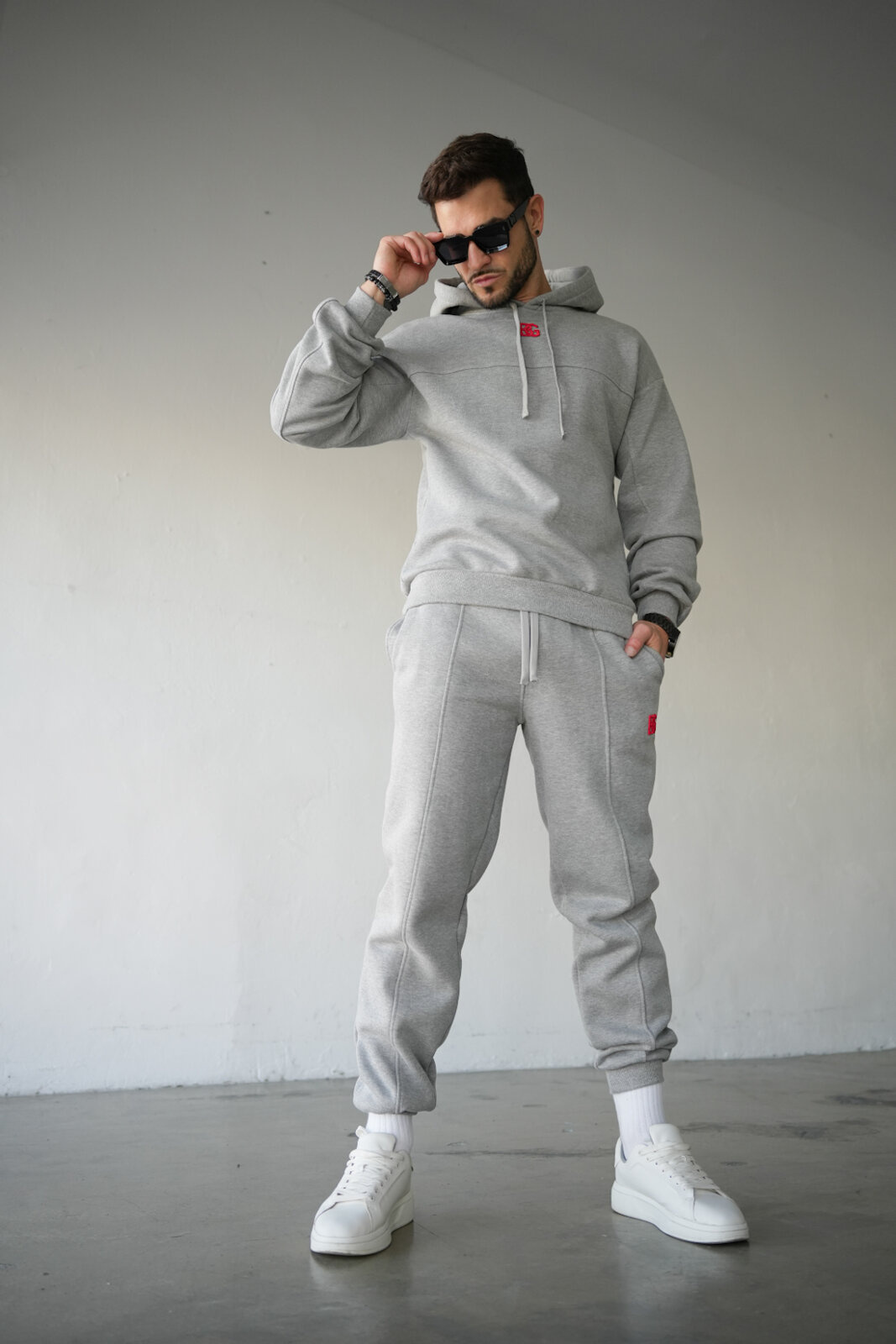 • Dres bawełniany z wysokiej jakości bawełny(ocieplanej). Dres posiada bluzę z kapturem oraz spodnie wykończone ściągaczem w pasie. Komplet charakteryzują liczne przeszycia wzdłuż spodni oraz na bluzie. Sznurek w kapturze oraz spodniach.