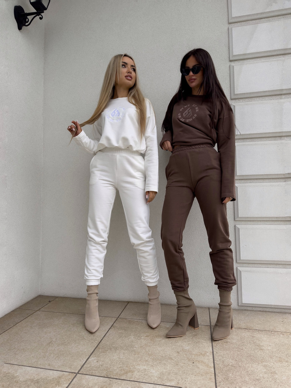• Komplet Louis składający się z bluzy o luźnym kroju, z długim rękawem z troczkiem regulującym długość oraz logowaniem na środku. Spodnie mają gumki na nogawkach i w pasie oraz dwie wbudowane kieszenie. Skład: 100% bawełna