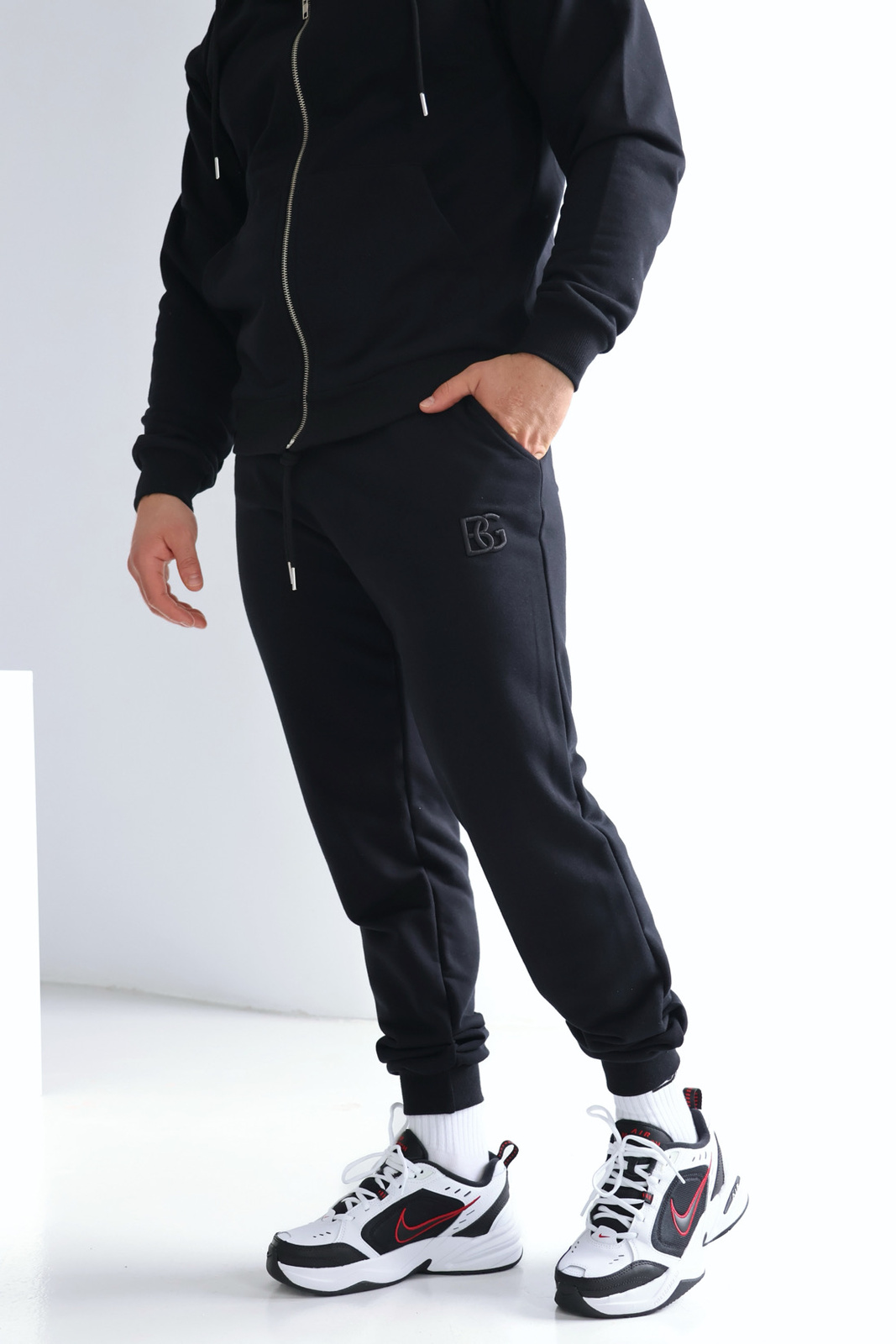 Opis produktu: Spodnie BG BRAND z wysokiej jakości bawełny nieocieplanej. Klasyczne spodnie dresowe z wyhaftowanym logo marki na nogawce. Kieszenie w boku oraz gumka ze sznurkiem w pasie. Spodnie wykończone ściągaczami. Produkt w stałej ofercie.