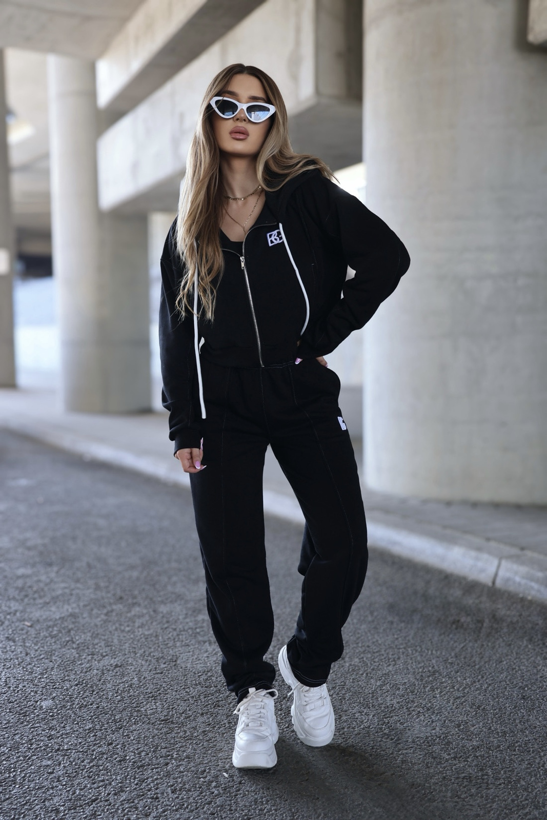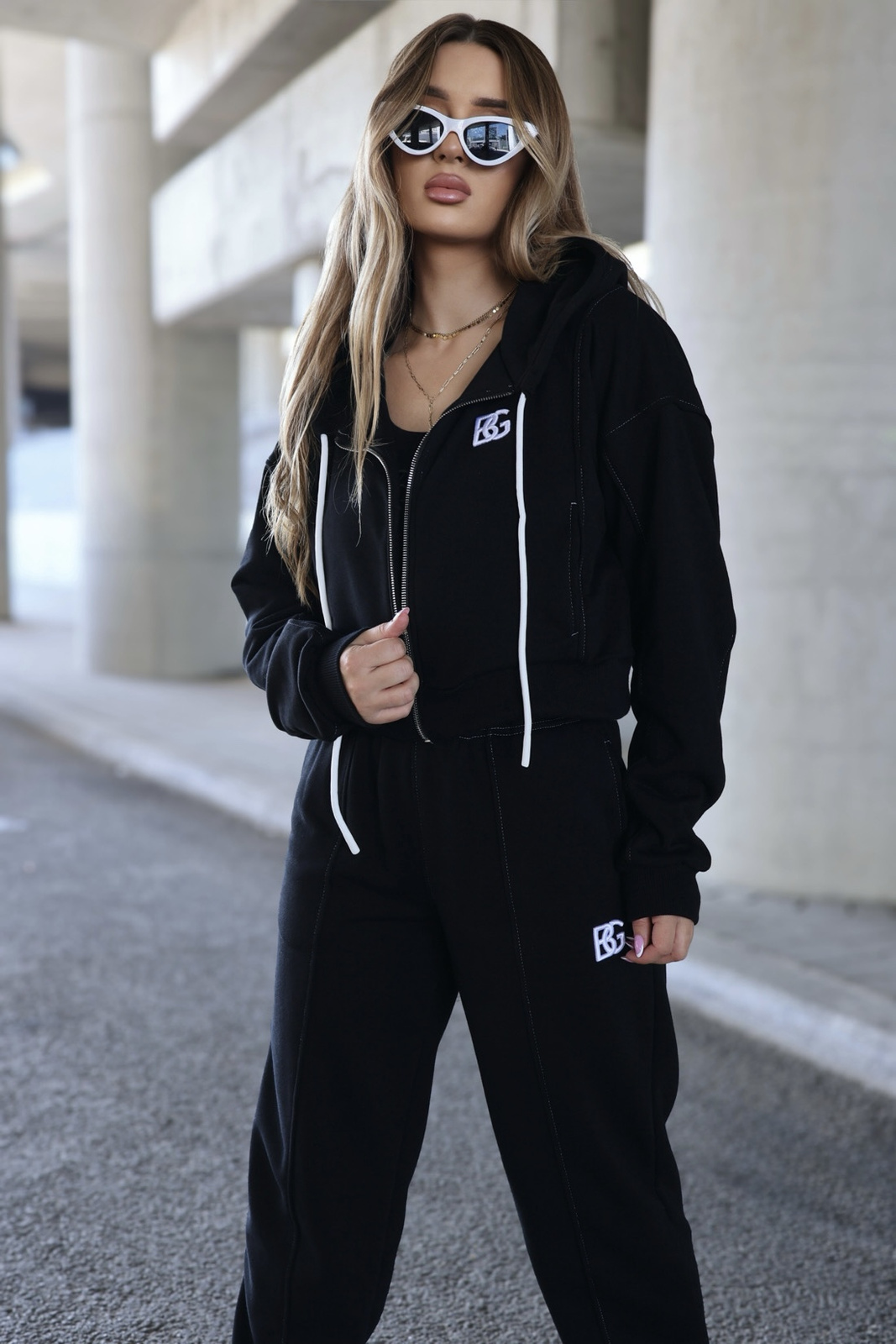 Opis produktu: Bluza damska BG WHITE z wysokiej jakości bawełny nieocieplanej. Bluza rozpinana z wyhaftowanym logo marki na piersi w kolorze białym. Bluza wykończona ściągaczami, zapinana na metalowy suwak. Posiada kieszenie oraz kaptur ze sznurkiem. Ozdobne białe przeszycia.