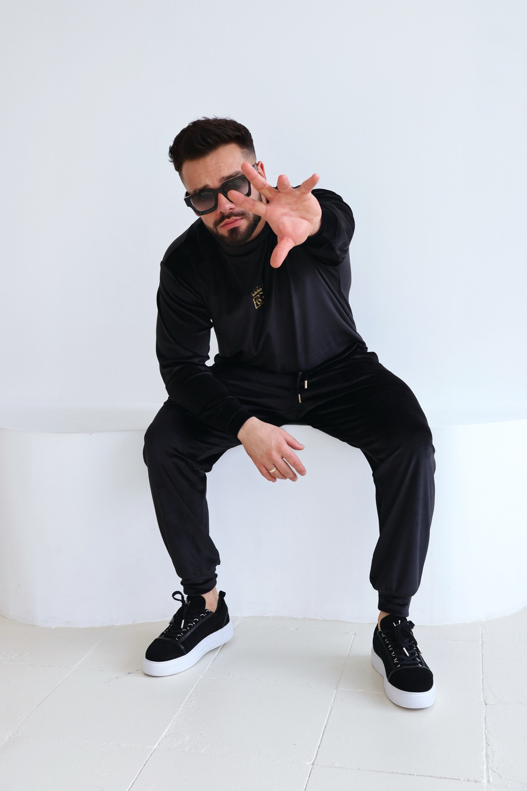 Opis produktu: Dres welurowy BG PALACE. Bluza oraz spodnie zdobione haftowanym logo BG z koroną w kolorze złotym. Spodnie posiadają gumkę w pasie oraz sznurek ze złotymi zakończeniami.