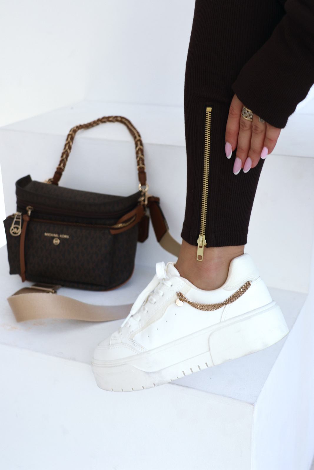 Opis produktu: Legginsy BG GODDESS z wysokiej jakości ściągacza bawełnianego. Legginsy z bardzo wysokim stanem, szeroka guma, logowane złotym logo BG na środku paska. Dodatkowo leginsy posiadają ozdobne złote suwaki w dole nogawki.