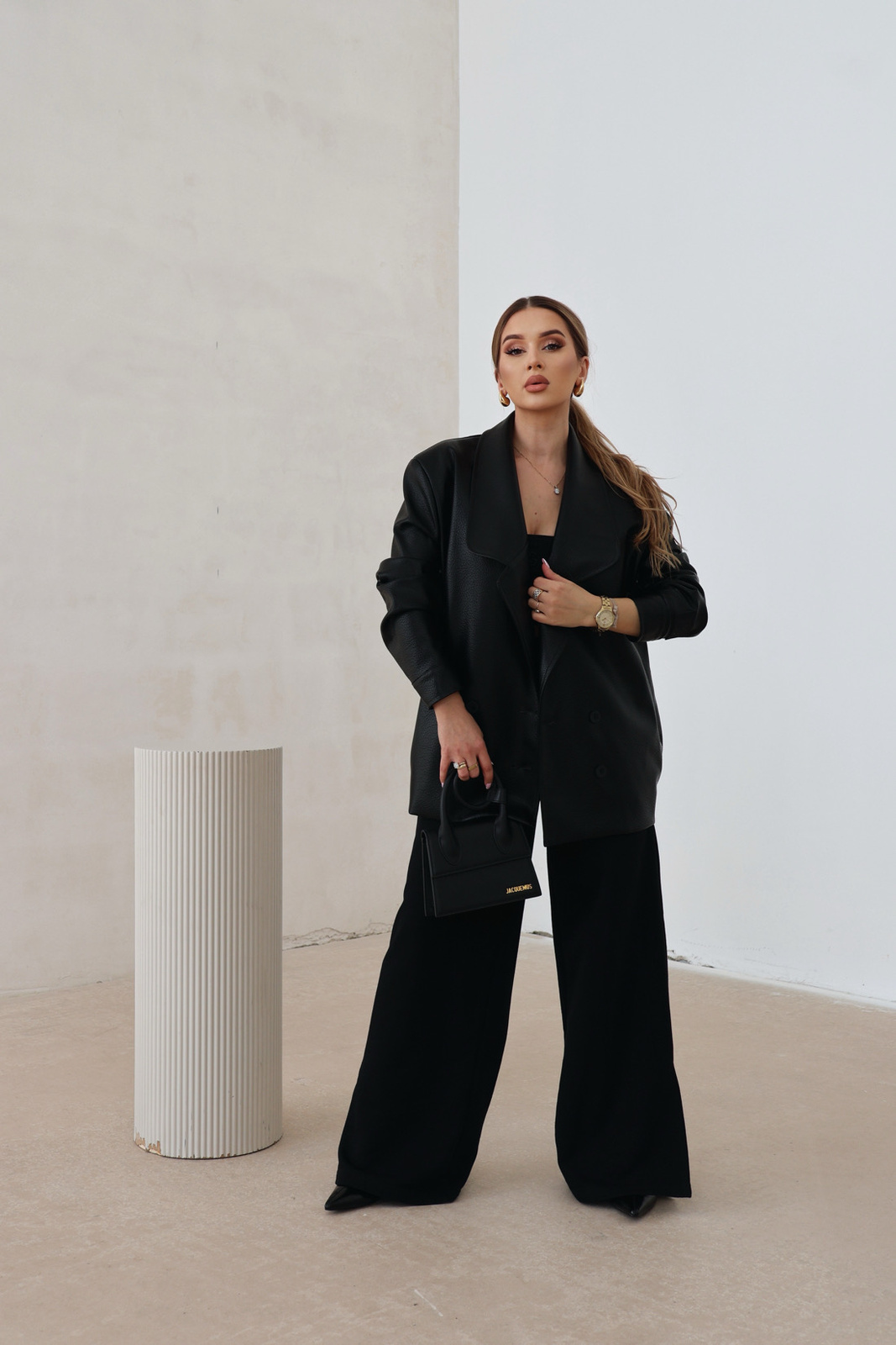 Opis produktu: Marynarka damska z imitacji karbowanej skóry. Dwurzędowa, zapinana na logowane guziki marki BG Brandenburg Couture. Na lewym rękawie elegancka naszywka z logo marki w kolorze czarnym. Marynarka na podszewce. Dodatkowo posiada kieszenie.