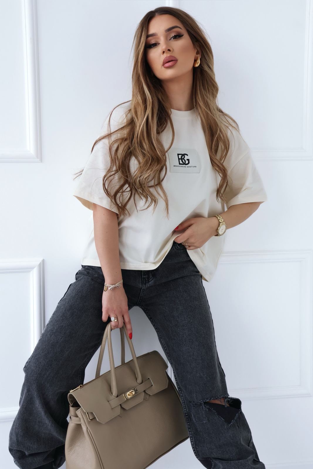 Opis produktu: T-shirt BG BING z wysokiej jakości bawełny z domieszką elastanu. Ozdobna bawełniana naszywka z logo marki BG Brandenburg Couture na przodzie. T-shirt o szerszym kroju.