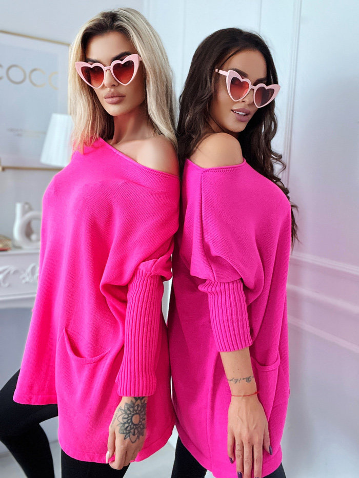 Damski długi sweter fuksja 142224F
