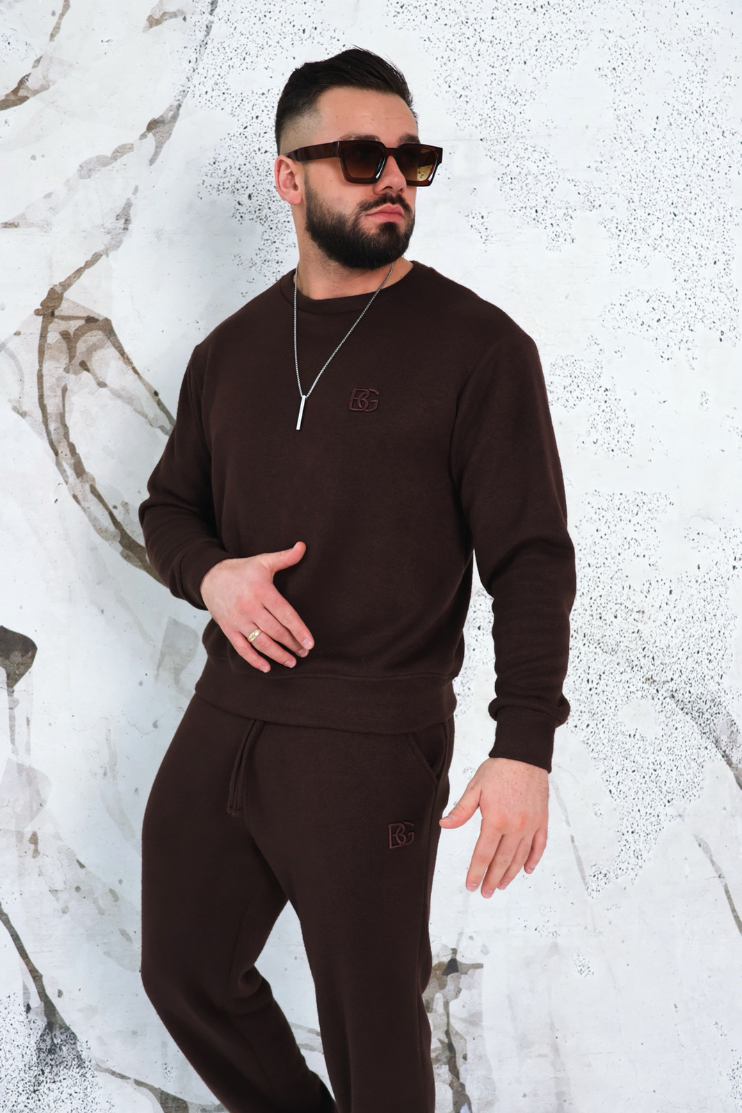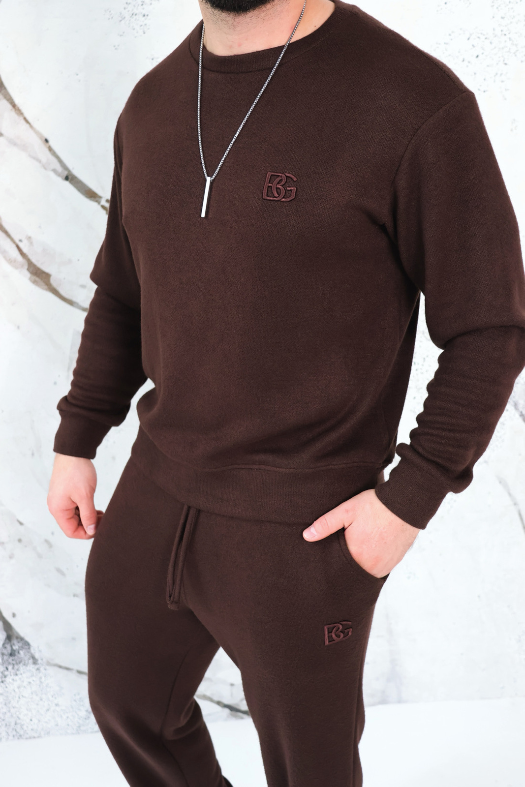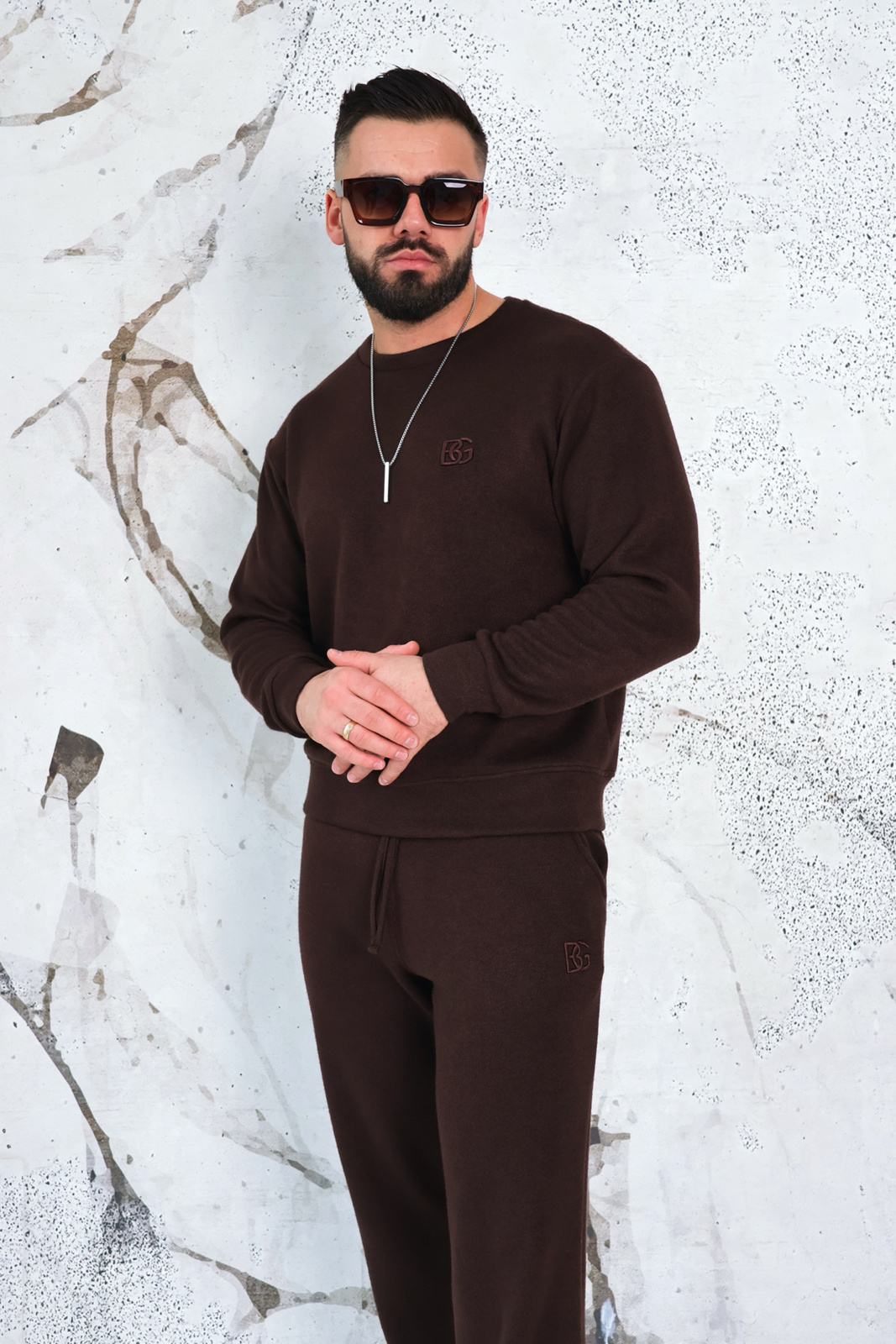 Opis produktu: Komplet sweterkowy BG VINCI. Bluza oraz spodnie logowane haftem BG w kolorze materiału. Sznurek ze sweterka w pasie.