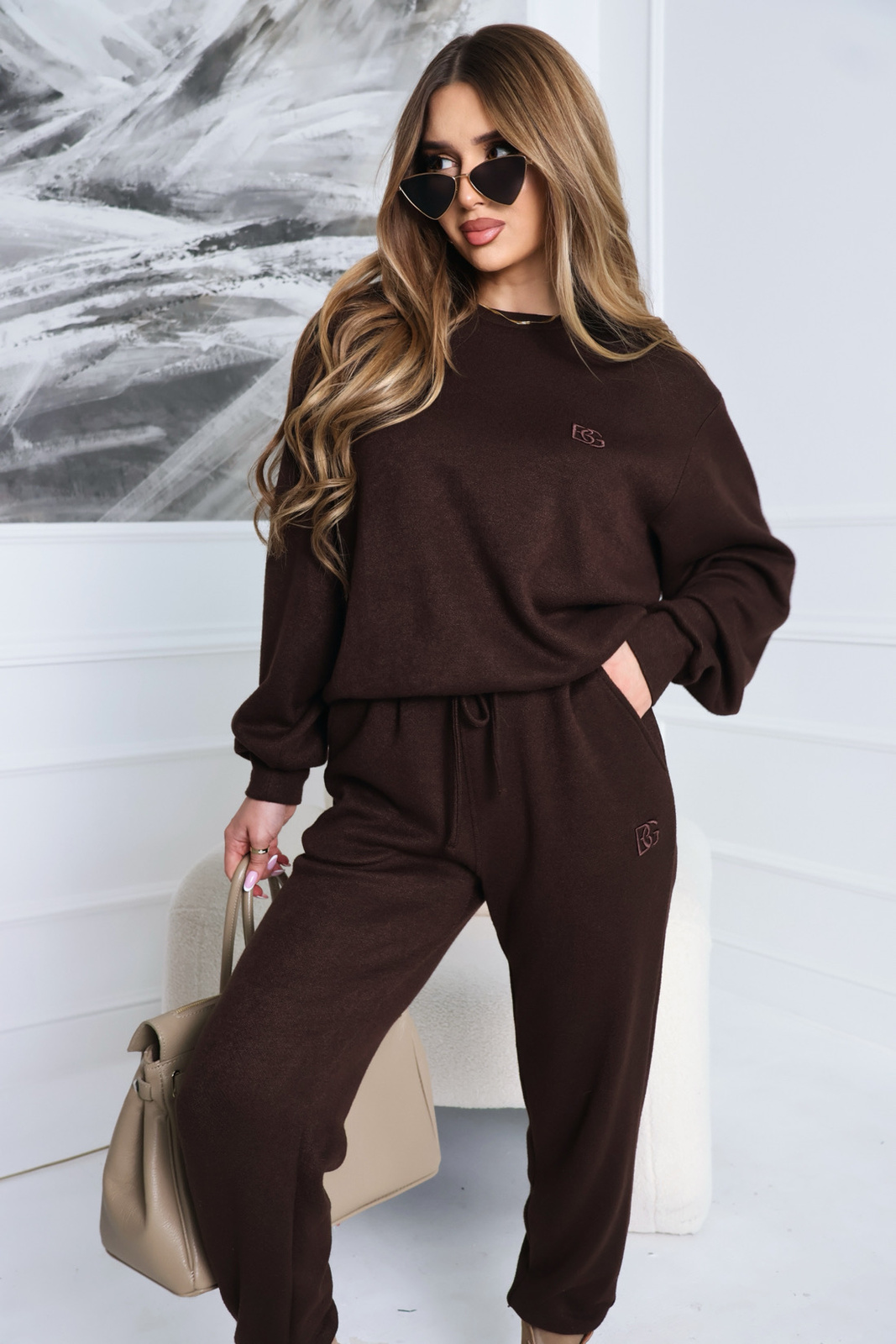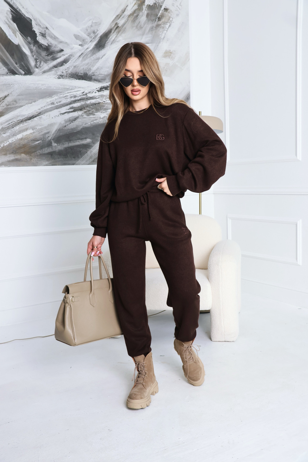 Opis produktu: Komplet sweterkowy BG VINCI. Bluza oraz spodnie logowane haftem BG w kolorze materiału. Sznurek ze sweterka w pasie.