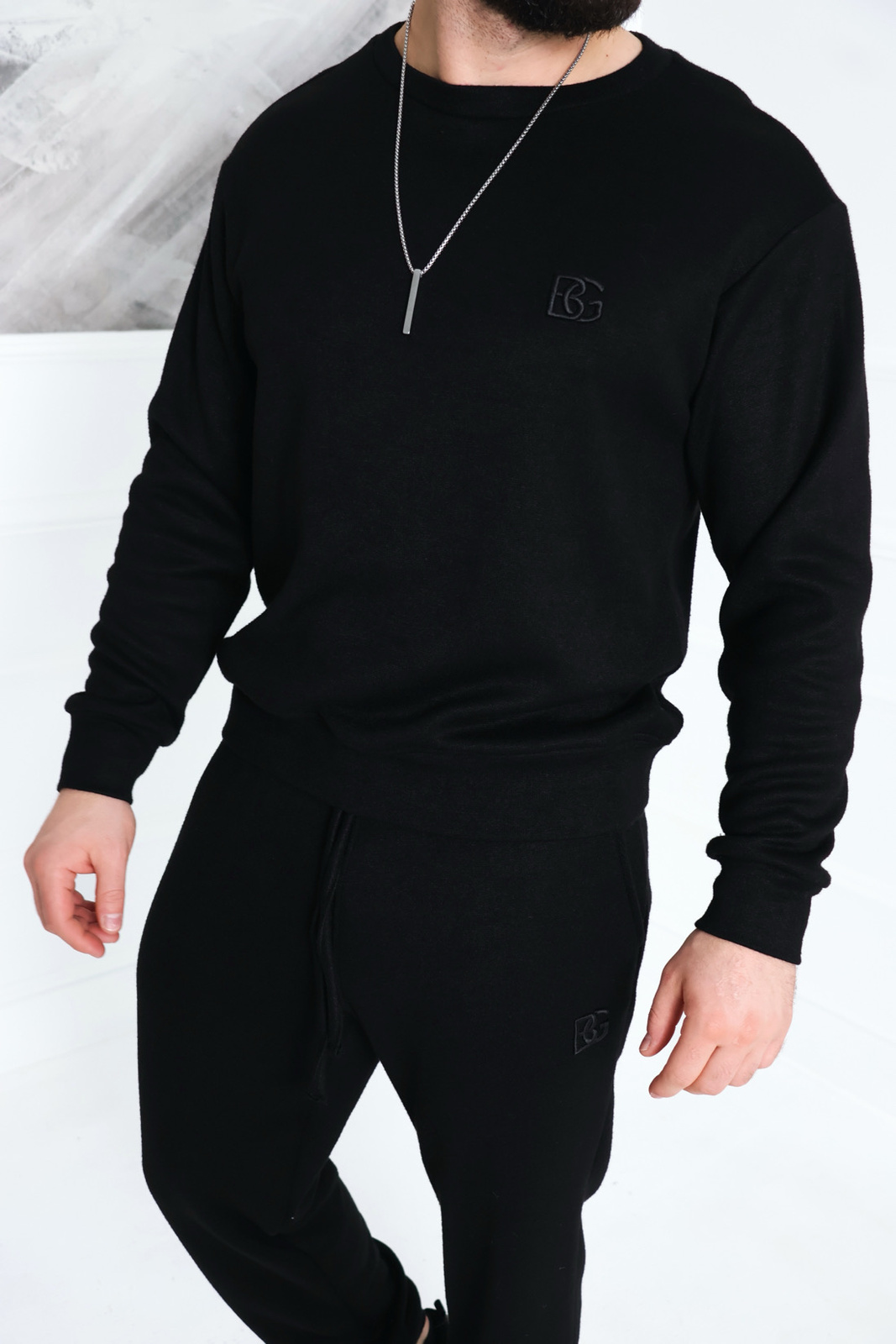 Opis produktu: Komplet sweterkowy BG VINCI. Bluza oraz spodnie logowane haftem BG w kolorze materiału. Sznurek ze sweterka w pasie.