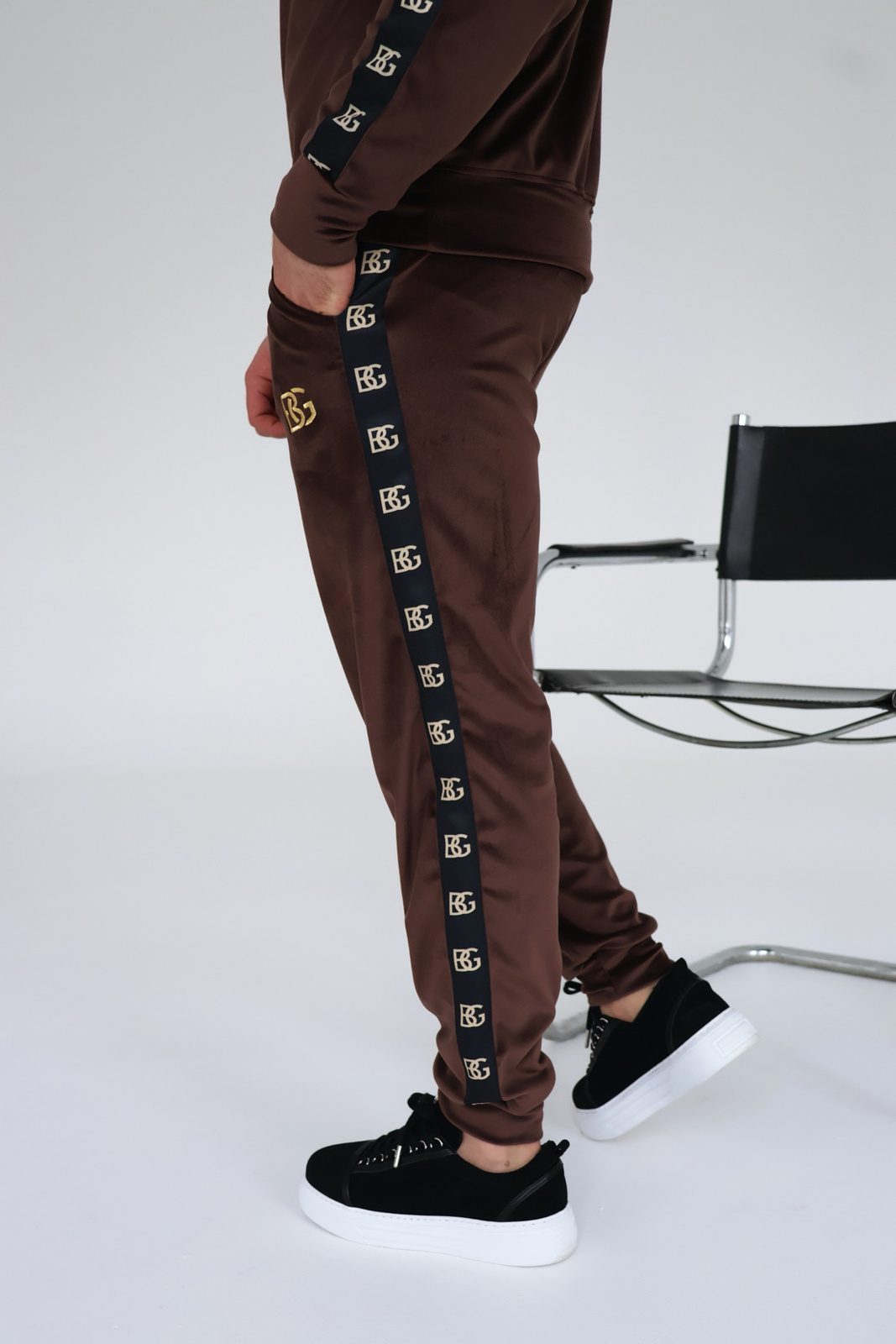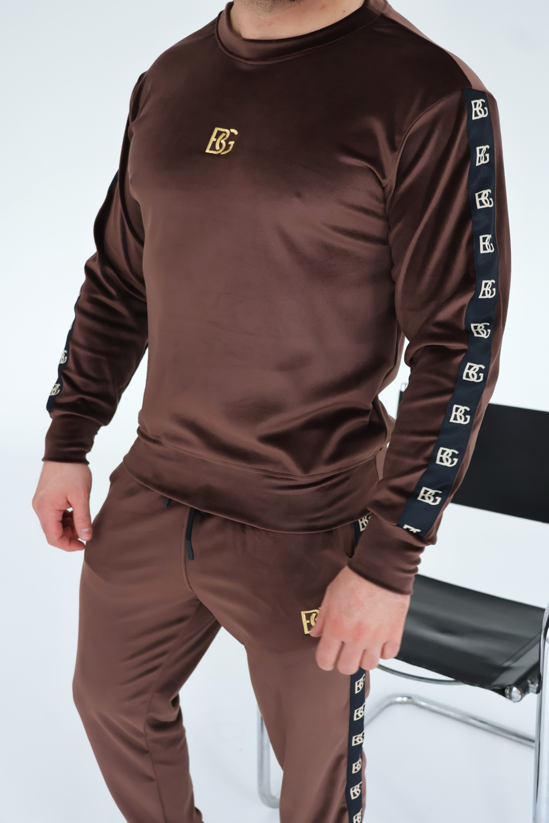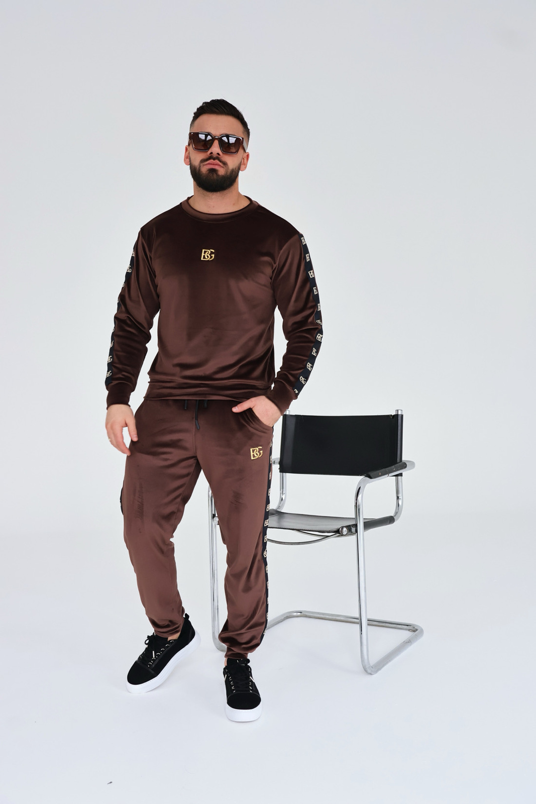 Opis produktu: Dres welurowy BG LORDY. Bluza oraz spodnie zdobione haftowanym logo BG w kolorze złotym. Na rękawach oraz nogawkach spodni ozdobne czarne lampasy ze złotym logo BG. Spodnie posiadają gumkę w pasie oraz sznurek.