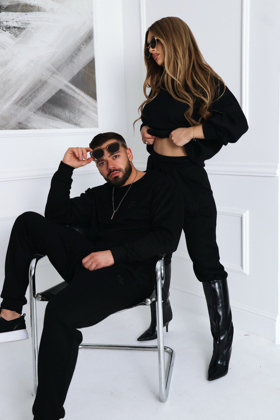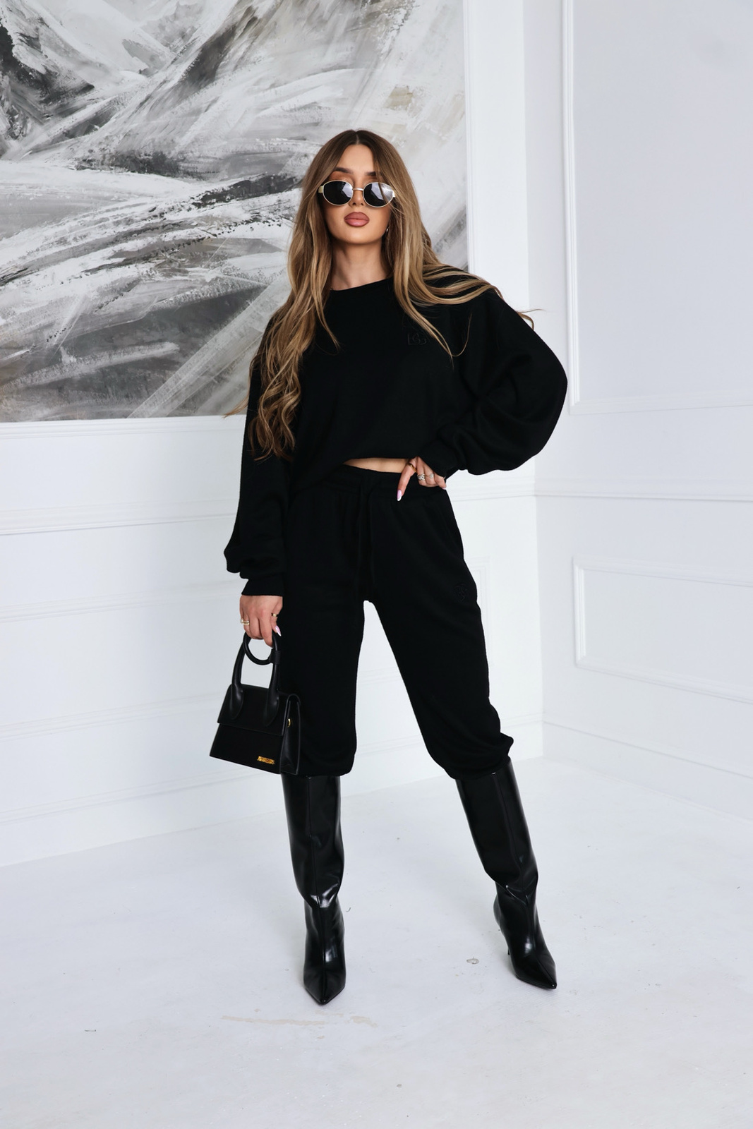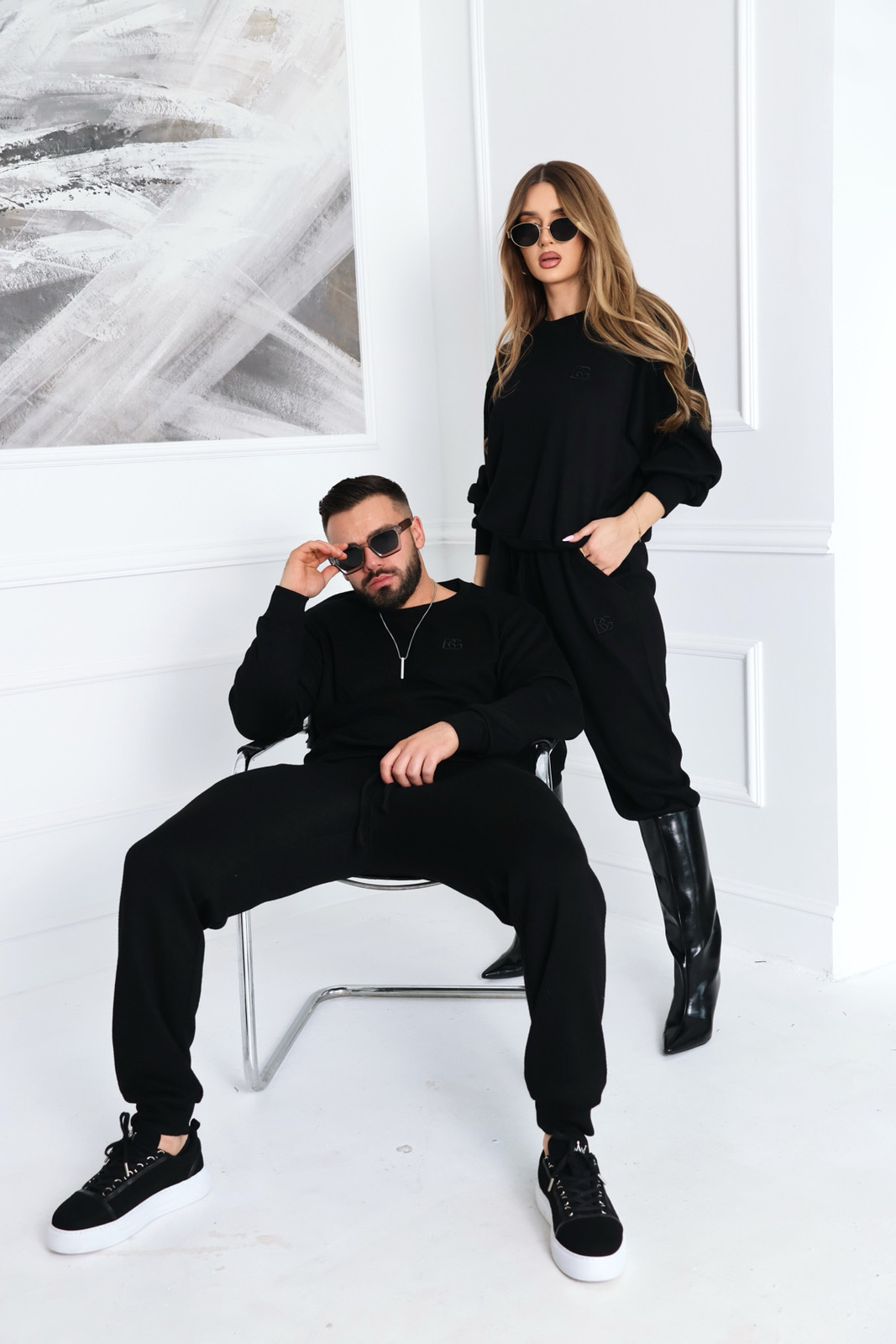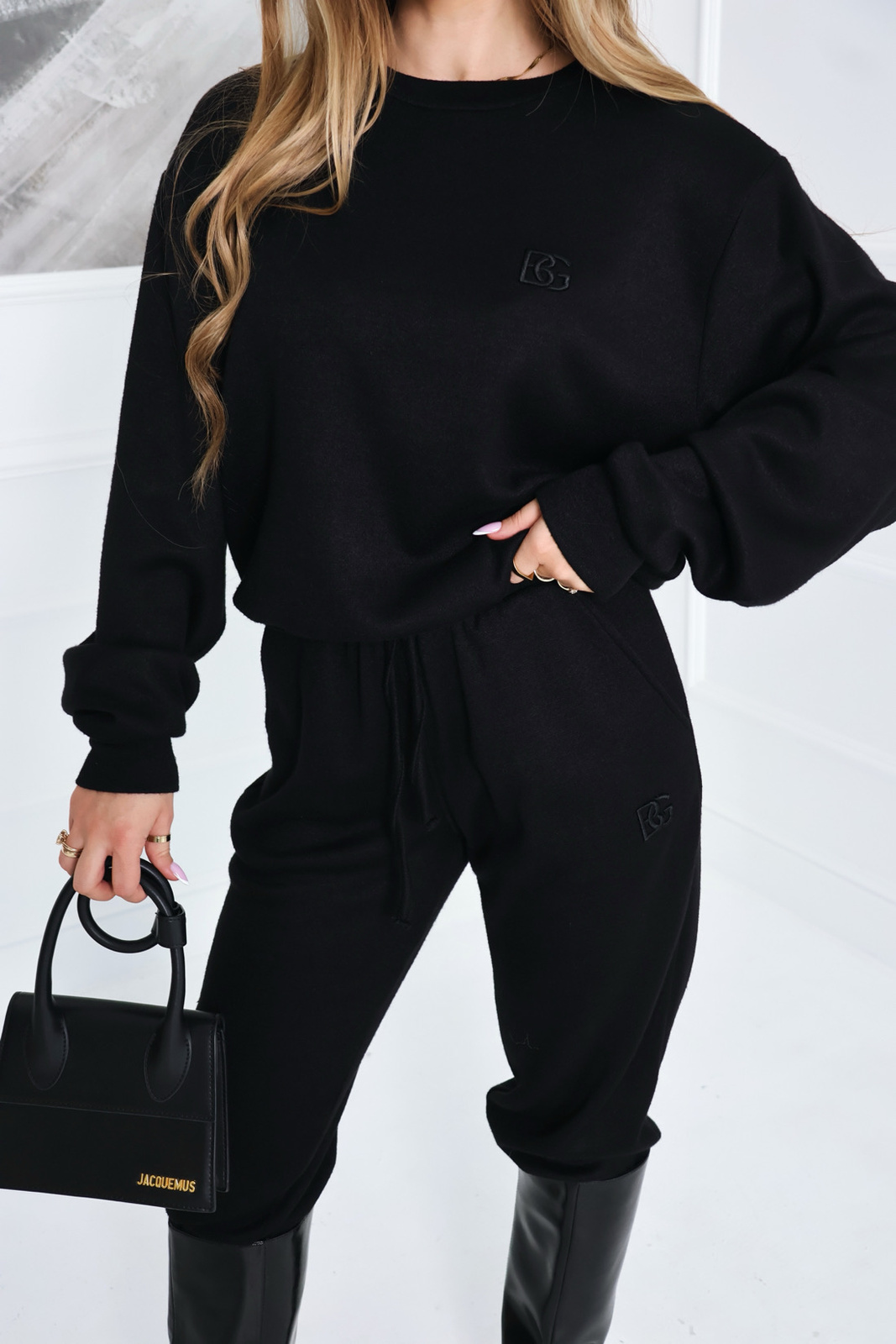 Opis produktu: Komplet sweterkowy BG VINCI. Bluza oraz spodnie logowane haftem BG w kolorze materiału. Sznurek ze sweterka w pasie.
