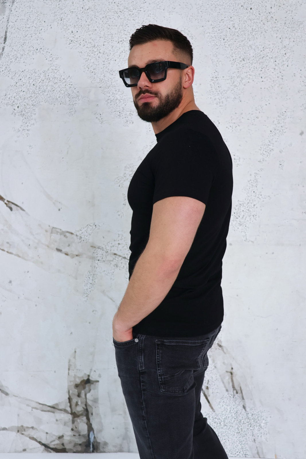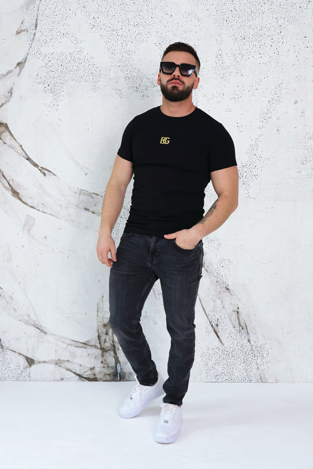 Opis produktu: Klasyczny T-shirt BG PRAY z wysokiej jakości bawełny z domieszką elastanu. Posiada logowanie marki BG na środku klatki w kolorze złotym.