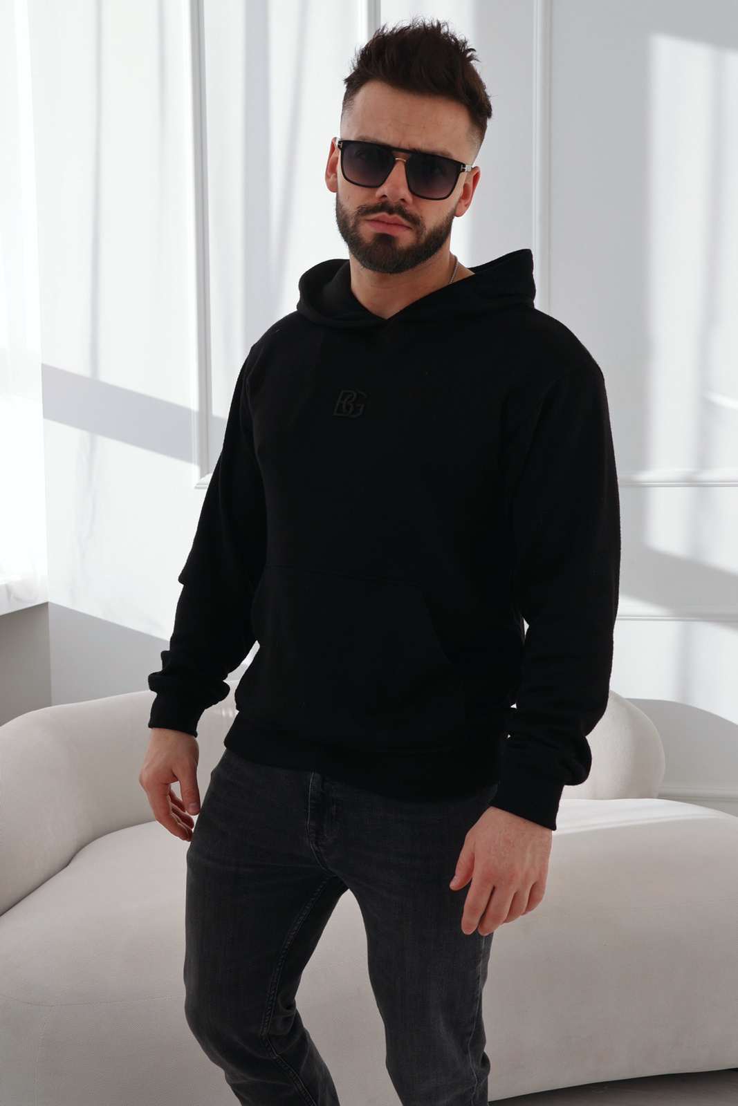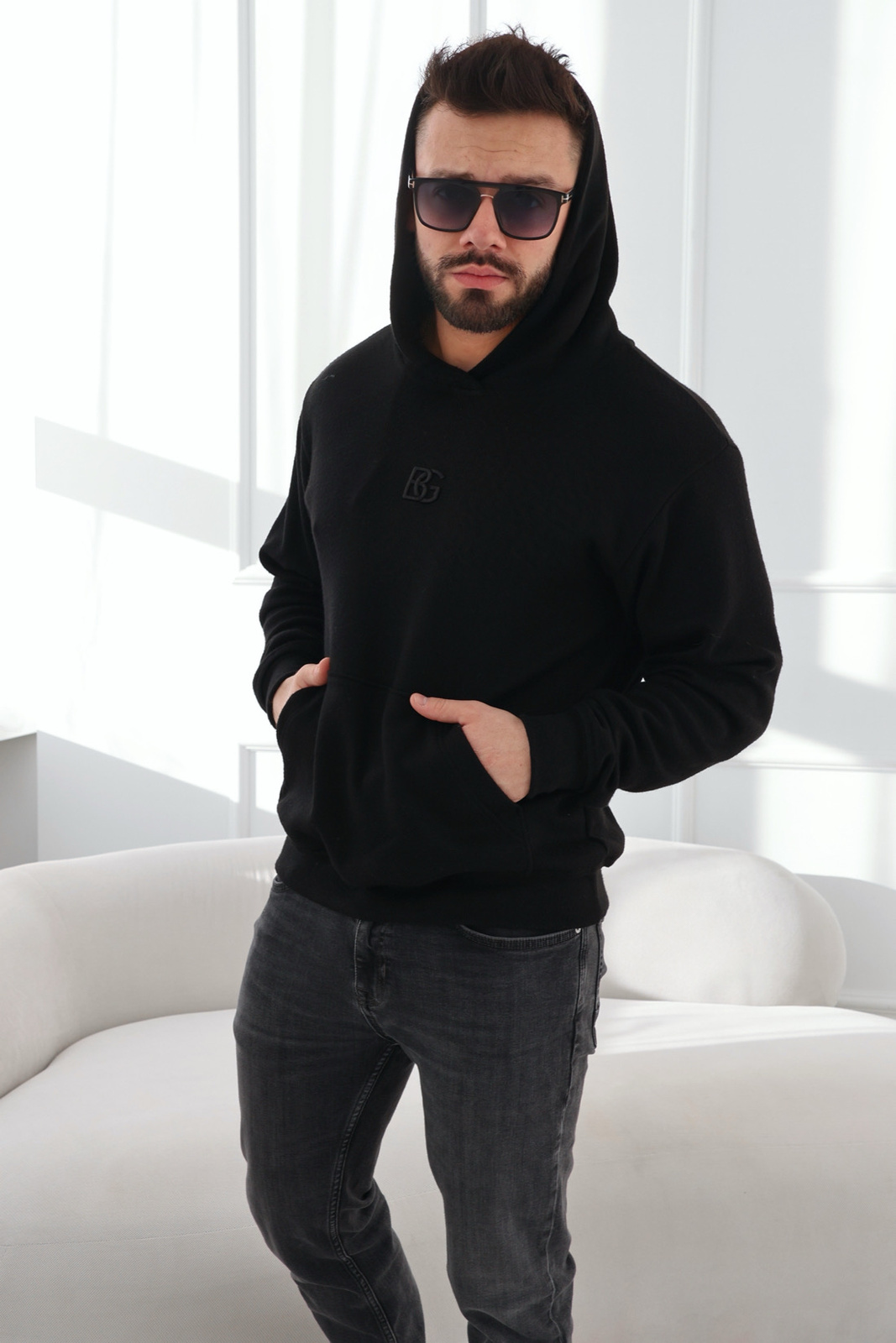 Opis produktu: Bluza męska BG OZZY z wysokiej jakości materiału sweterkowego. Klasyczna bluza kangurka z wyhaftowanym logo marki na środku.