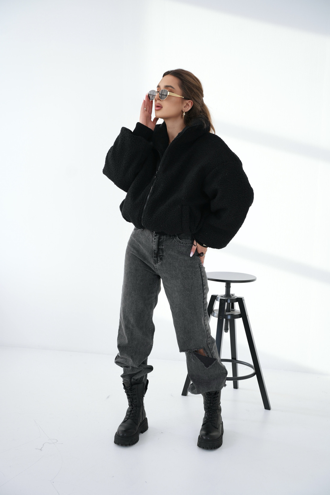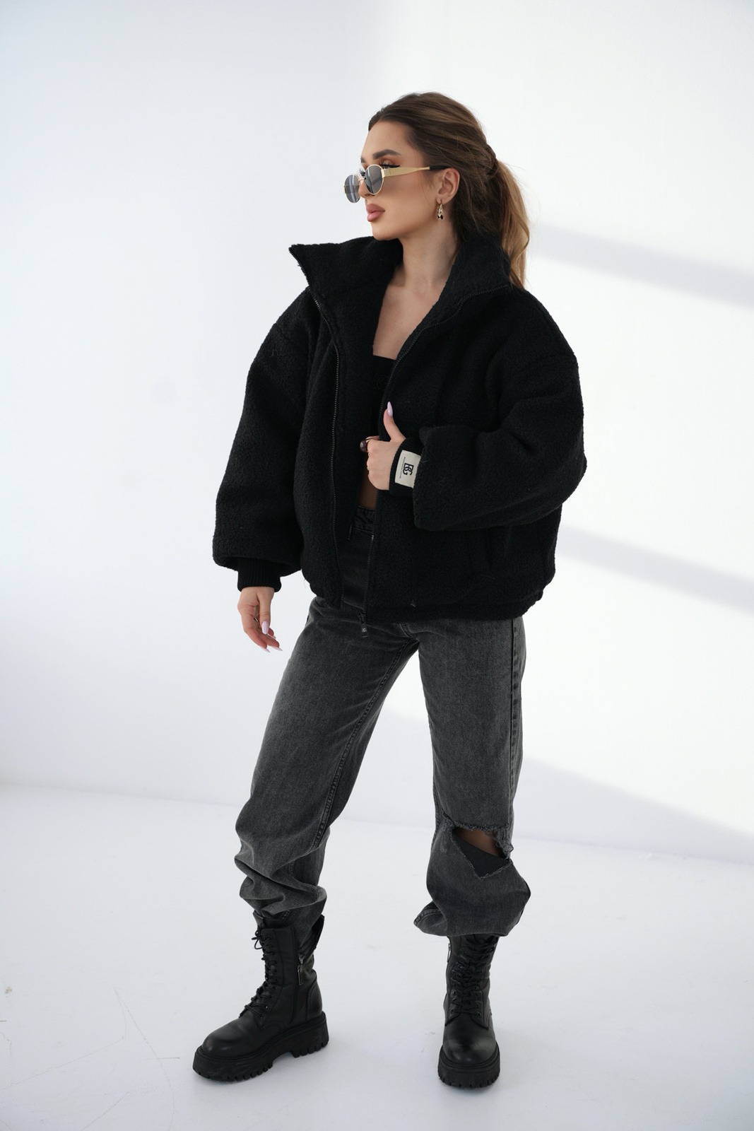Opis produktu: Krótka, oversizowa kurtka typu „baranek” – idealna na zimę i wczesną wiosnę. Całość wykonana z ultra-miękkiego, gęstego sztucznego misia - puszysty, milutki w dotyku i bardzo ciepły. W środku dodatkowy, miękki ocieplacz oraz gładka, satynowa podszewka w tym samym odcieniu. Wysoki, otulający kołnierz. Mankiety wykończone szerokimi ściągaczami z naszywką z logo marki BG Brandenburg Couture. Na dole regulacja szerokości za pomocą grubego, gumowanego sznurka ze srebrnymi stoperami. Na plecach duże, haftowane eleganckie logo marki BG Brandenburg Couture. Luźny, lekko pudełkowy krój, opadające ramiona i krótka długość – wygląda obłędnie do legginsów, spodni z wysokim stanem. To połączenie przytulności domowego koca z miejskim, luksusowym stylem.