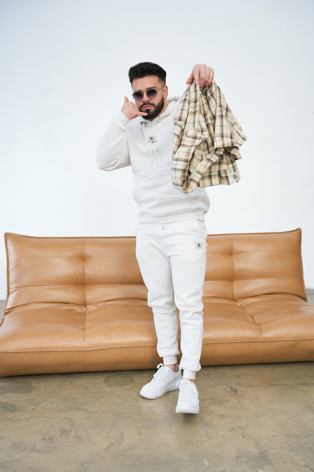 Opis produktu: Komplet dresowy męski BG JETLAG z wysokiej jakości bawełny ocieplanej. Komplet składa się z bluzy kangurki z kapturem oraz spodni z kieszeniami. Sznurki w kapturze oraz w pasie spodni. Naszywki z logiem na przodzie bluzy oraz przy kieszeni nogawki. Na spodniach dodatkowo z tyłu wszyta kieszeń na suwak. Komplet wykończony ściągaczami. Znakomity wybór dla każdego mężczyzny.