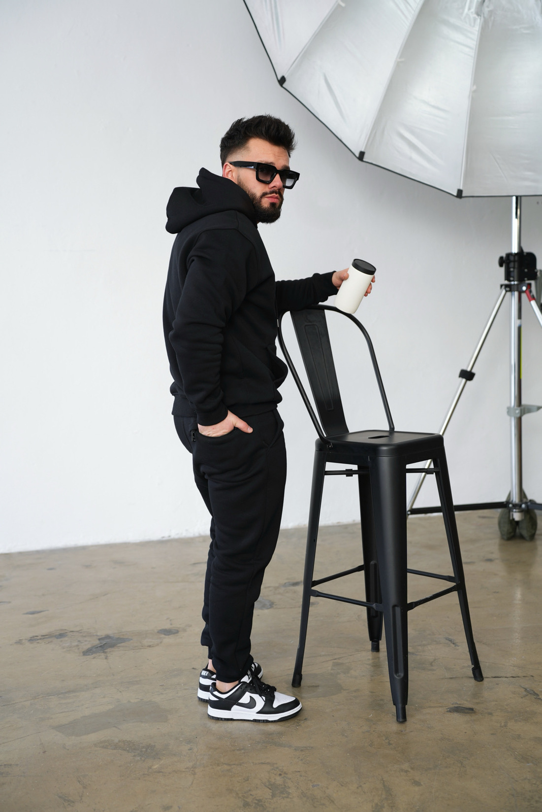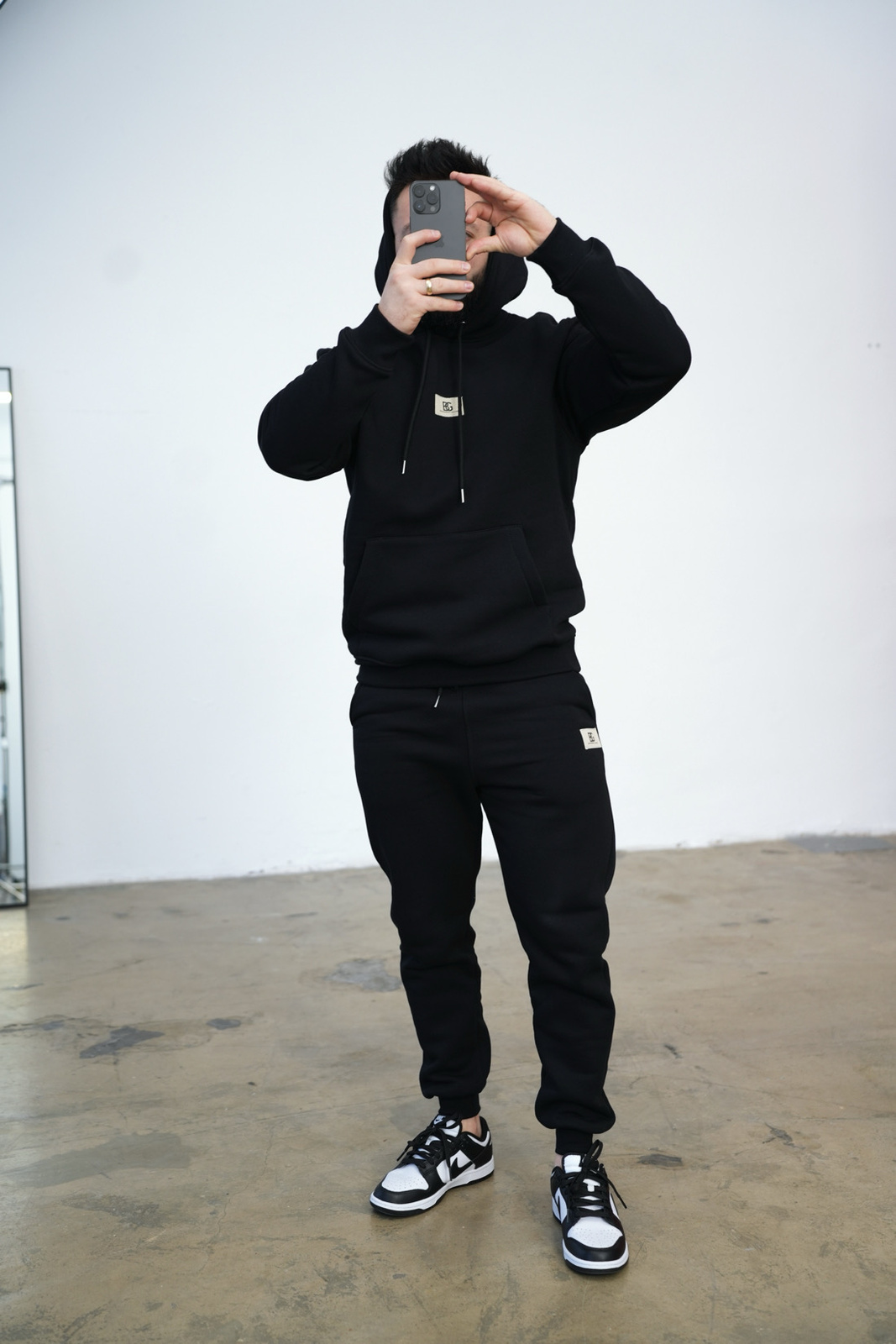 Opis produktu: Komplet dresowy męski BG JETLAG z wysokiej jakości bawełny ocieplanej. Komplet składa się z bluzy kangurki z kapturem oraz spodni z kieszeniami. Sznurki w kapturze oraz w pasie spodni. Naszywki z logiem na przodzie bluzy oraz przy kieszeni nogawki. Na spodniach dodatkowo z tyłu wszyta kieszeń na suwak. Komplet wykończony ściągaczami. Znakomity wybór dla każdego mężczyzny.