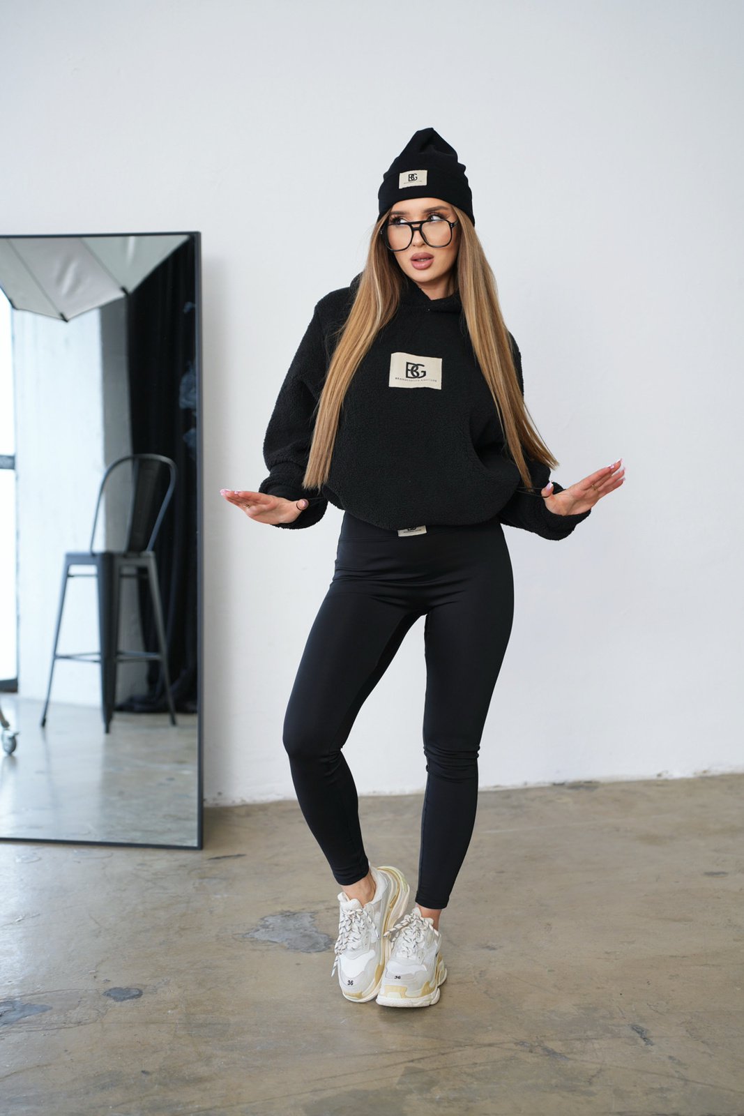 Opis produktu: Bluza damska BG WEST z miłego w dotyku polarowego misia. Bluza z kapturem, naszywka logowana marką BG na przodzie. Gumosznurek w dole do regulacji długości i szerokości bluzy. Model lekko oversize.