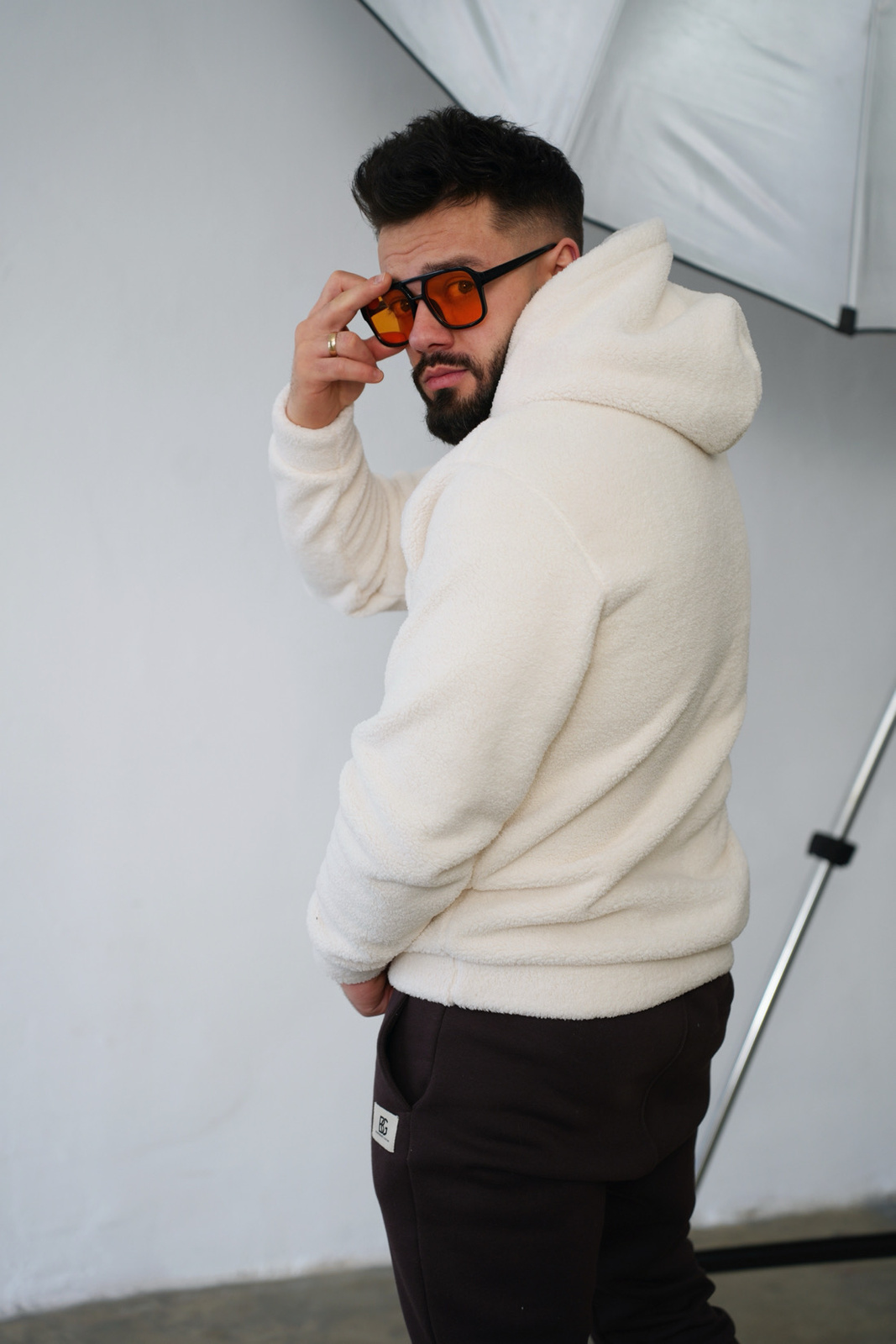 Opis produktu: Bluza męska BG NORTH z miłego w dotyku polarowego misia. Bluza z kapturem, naszywka logowana marką BG na przodzie. Model lekko oversize.