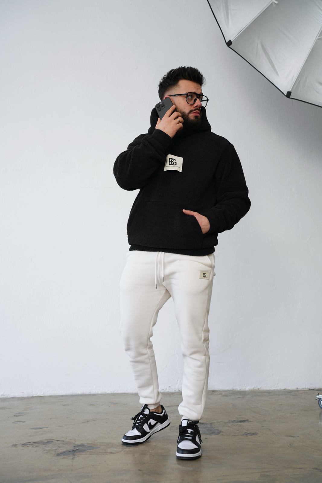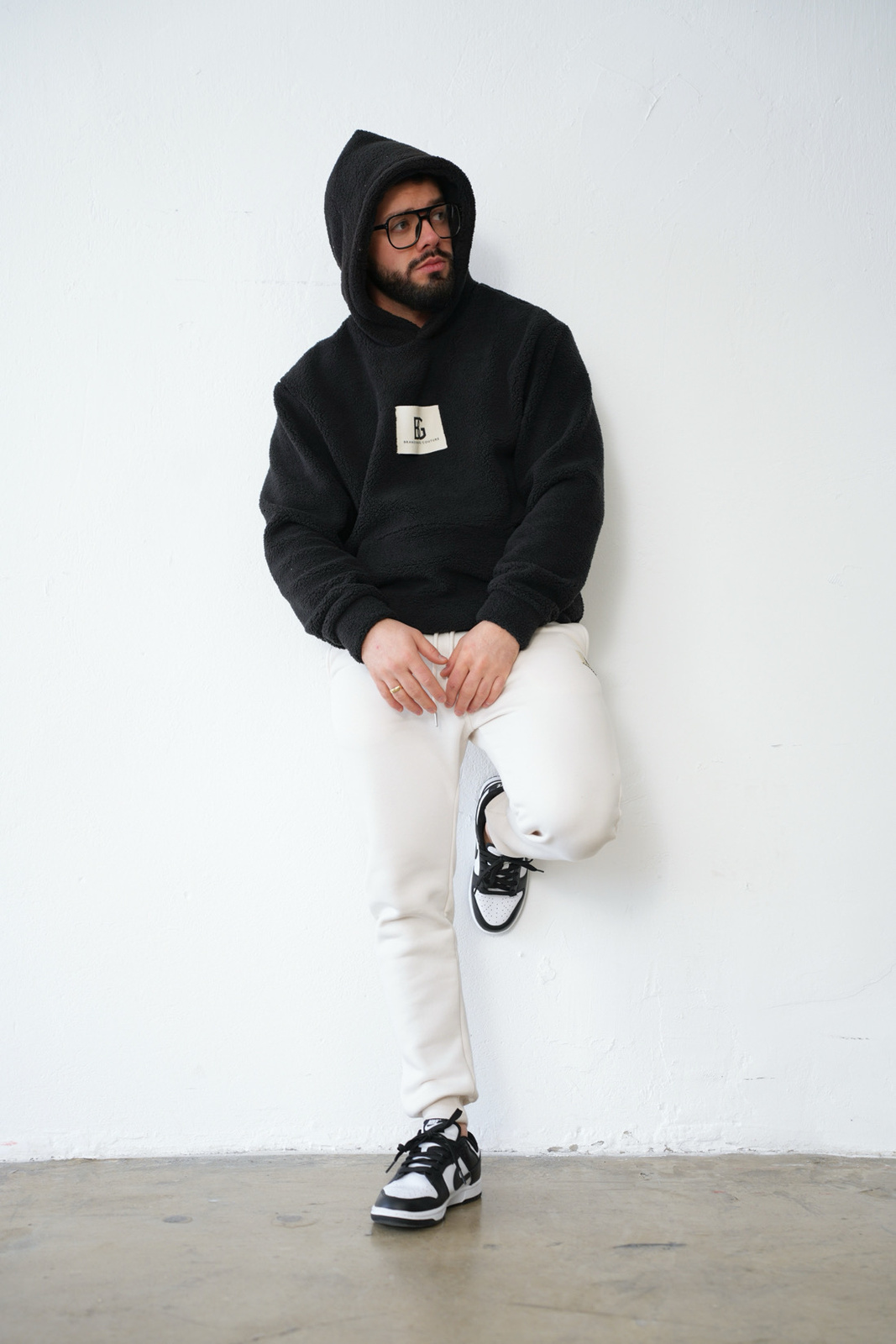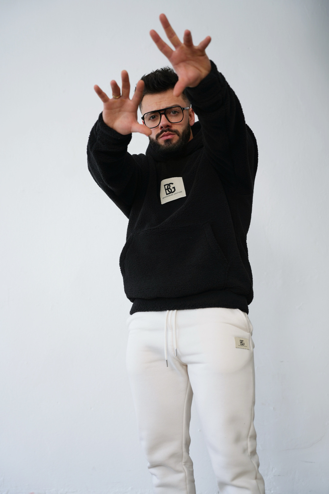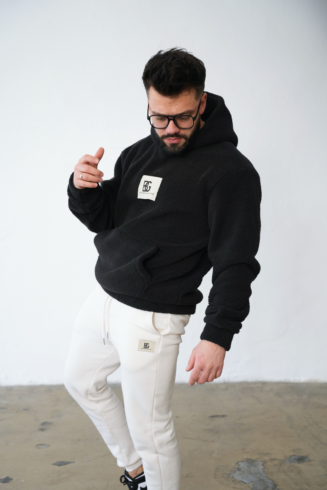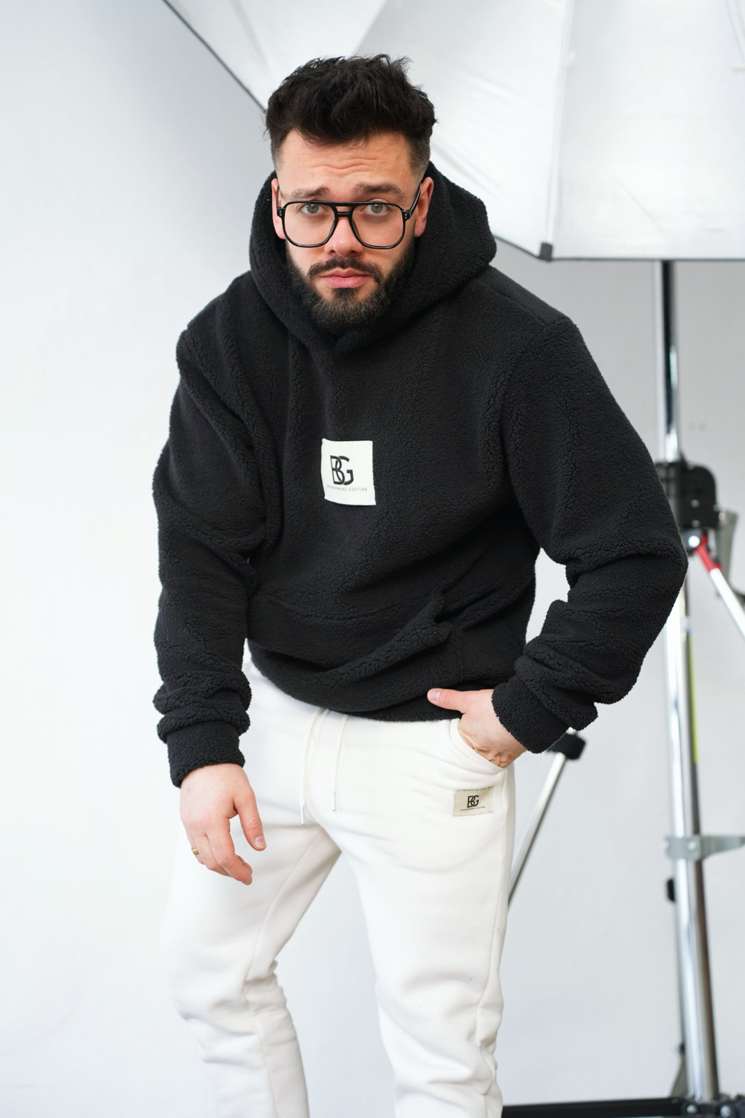 Opis produktu: Bluza męska BG NORTH z miłego w dotyku polarowego misia. Bluza z kapturem, naszywka logowana marką BG na przodzie. Model lekko oversize.