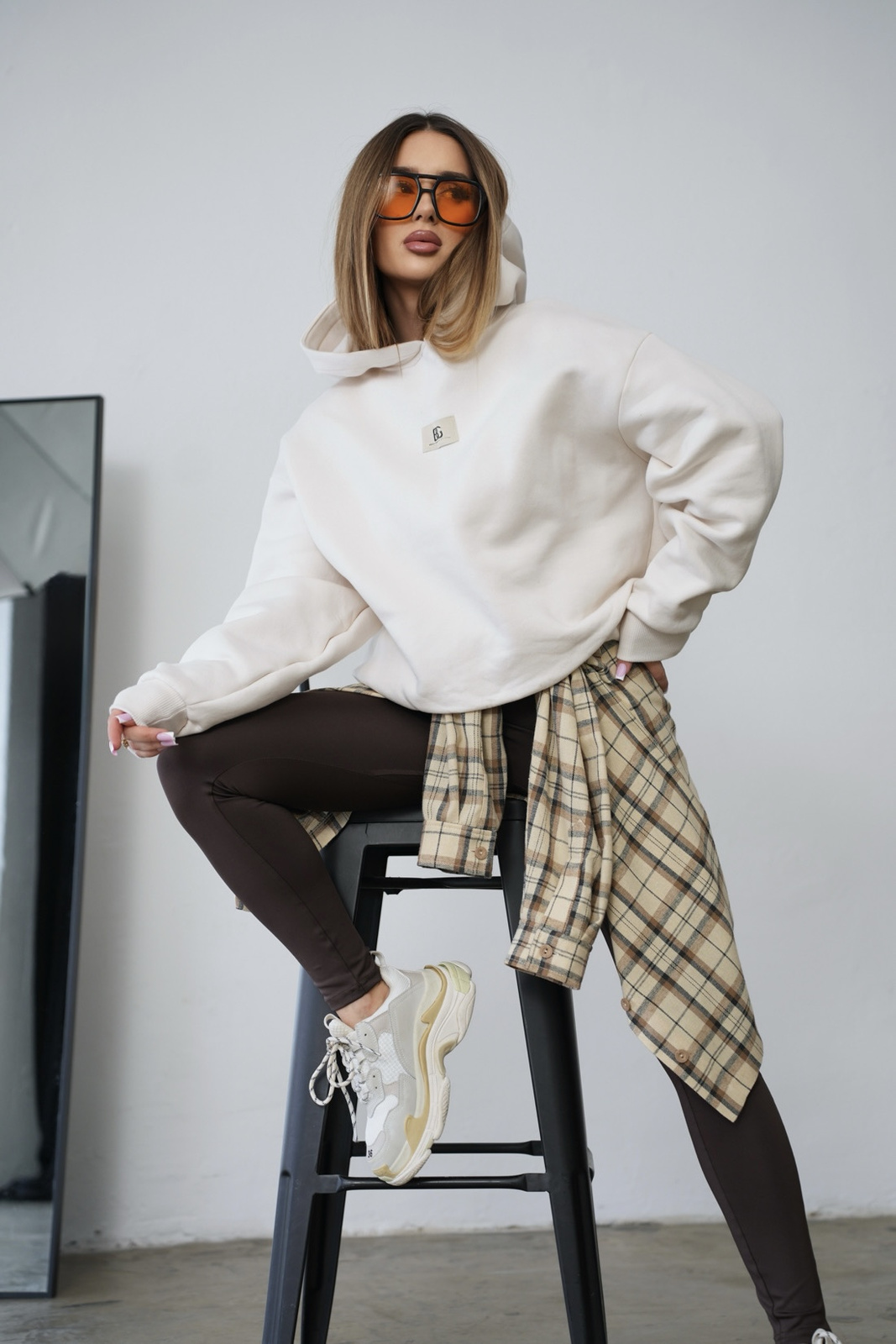 Opis produktu: Bluza damska BG BEBE z wysokiej jakości bawełny z dodatkową podszewką bawełnianą dodającej efekt bombki. Bluza z kapturem, wykończona ściągaczami, na środku naszywka z logiem marki BG. Model lekko oversize.