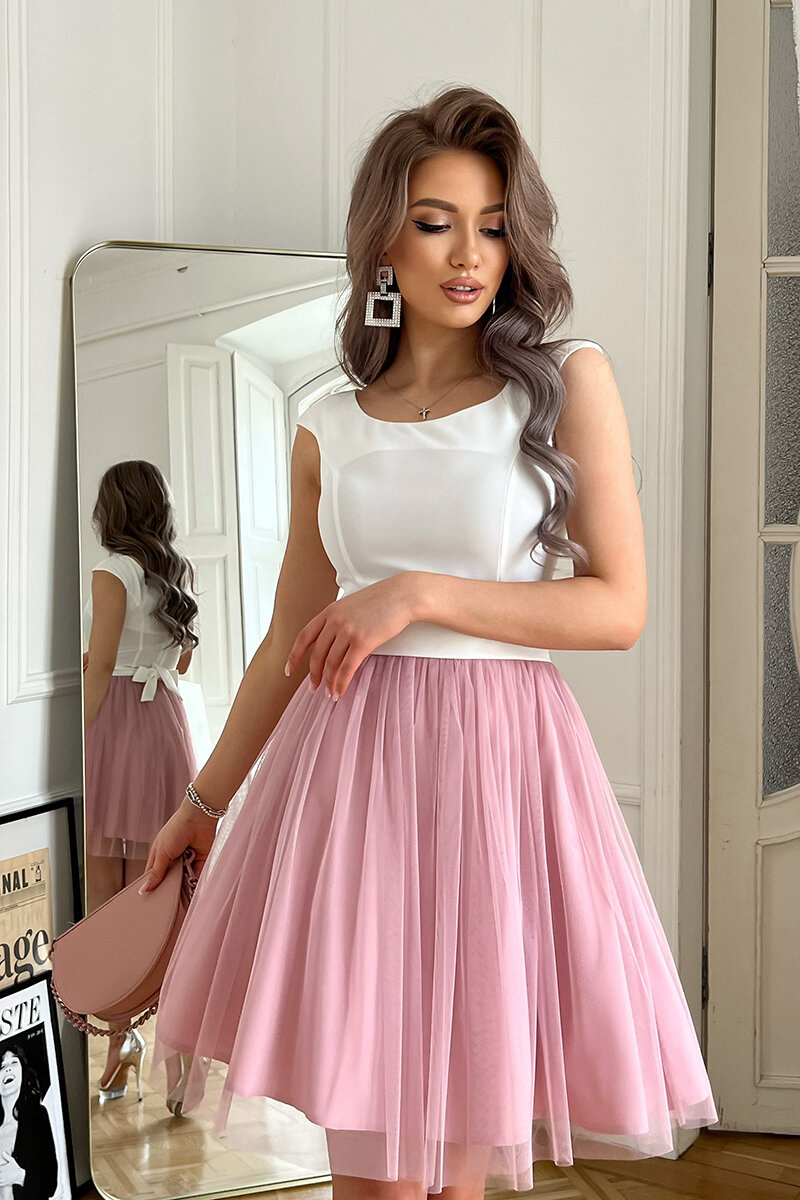 SUKIENKA LEKKO ROZKLOSZOWANA Z TIULEM BRUDNY RÓŻ