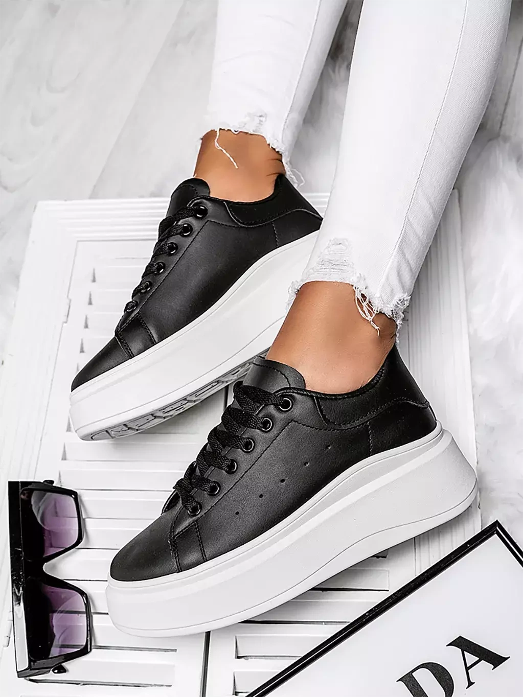 • Stylowe, sznurowane buty sportowe na wysokiej podeszwie. Klasyczny model, idealny do stylizacji na co dzień. Modne i wygodne!