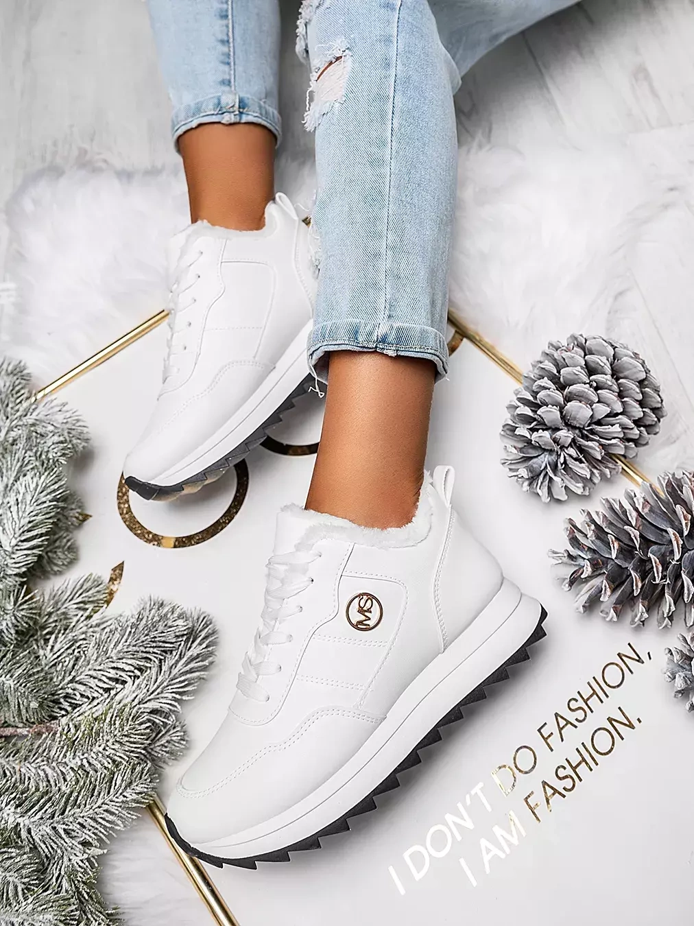 Białe ocieplane buty sportowe TL233-9 ze złotym znaczkiem dodadzą lekkości Twoim stylizacjom