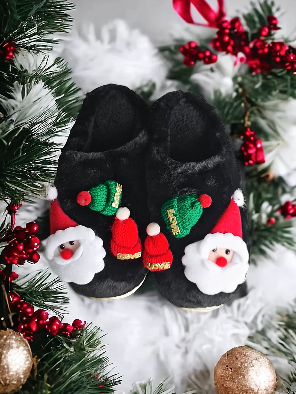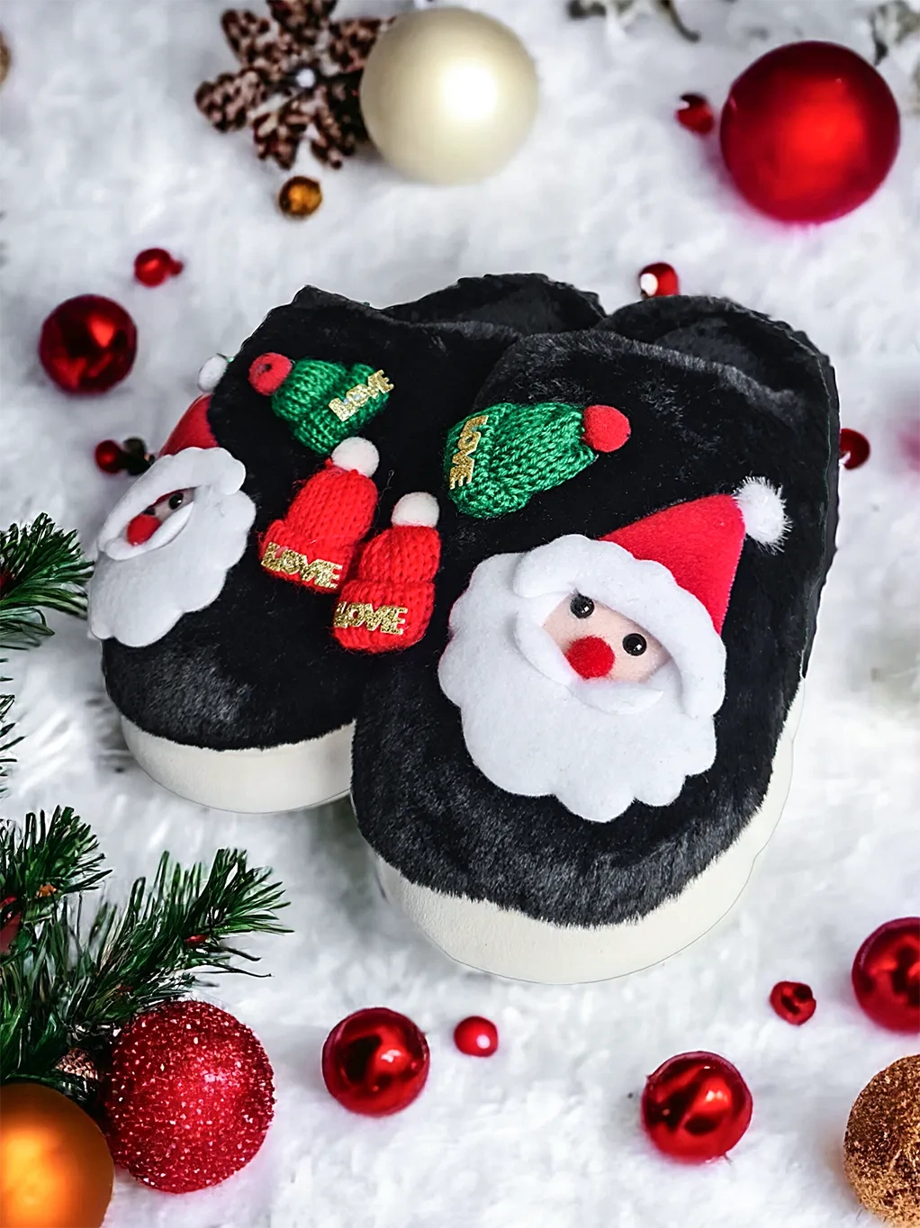 Damskie czarne kapcie świąteczne ze Świętym Mikołajem WS9036