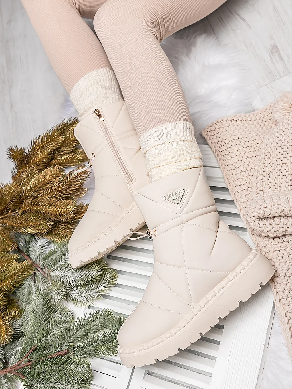 Damskie śniegowce jasnobeżowe ze ściągaczem HY860-8