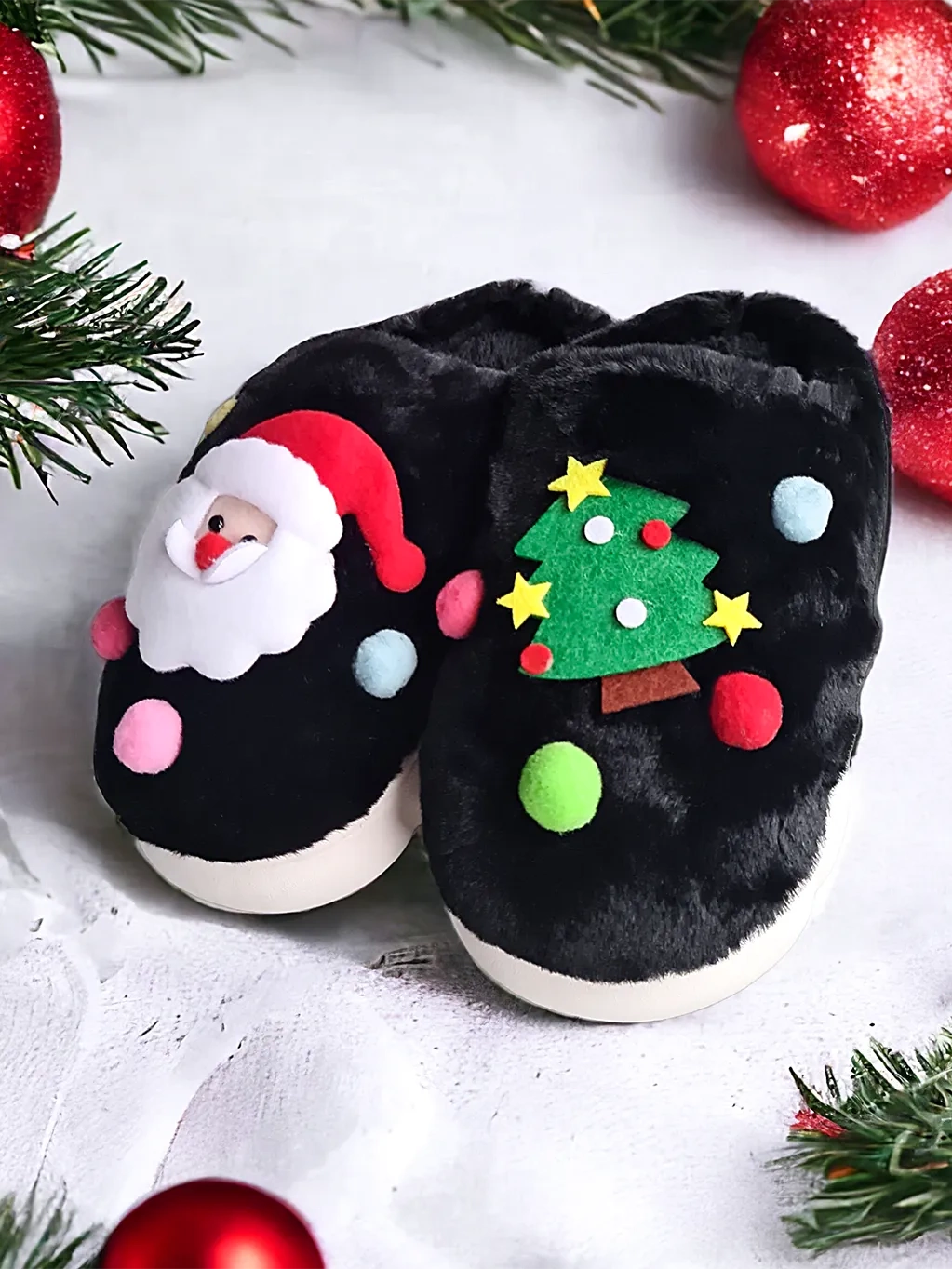 Damskie czarne kapcie świąteczne z choinką WS9037