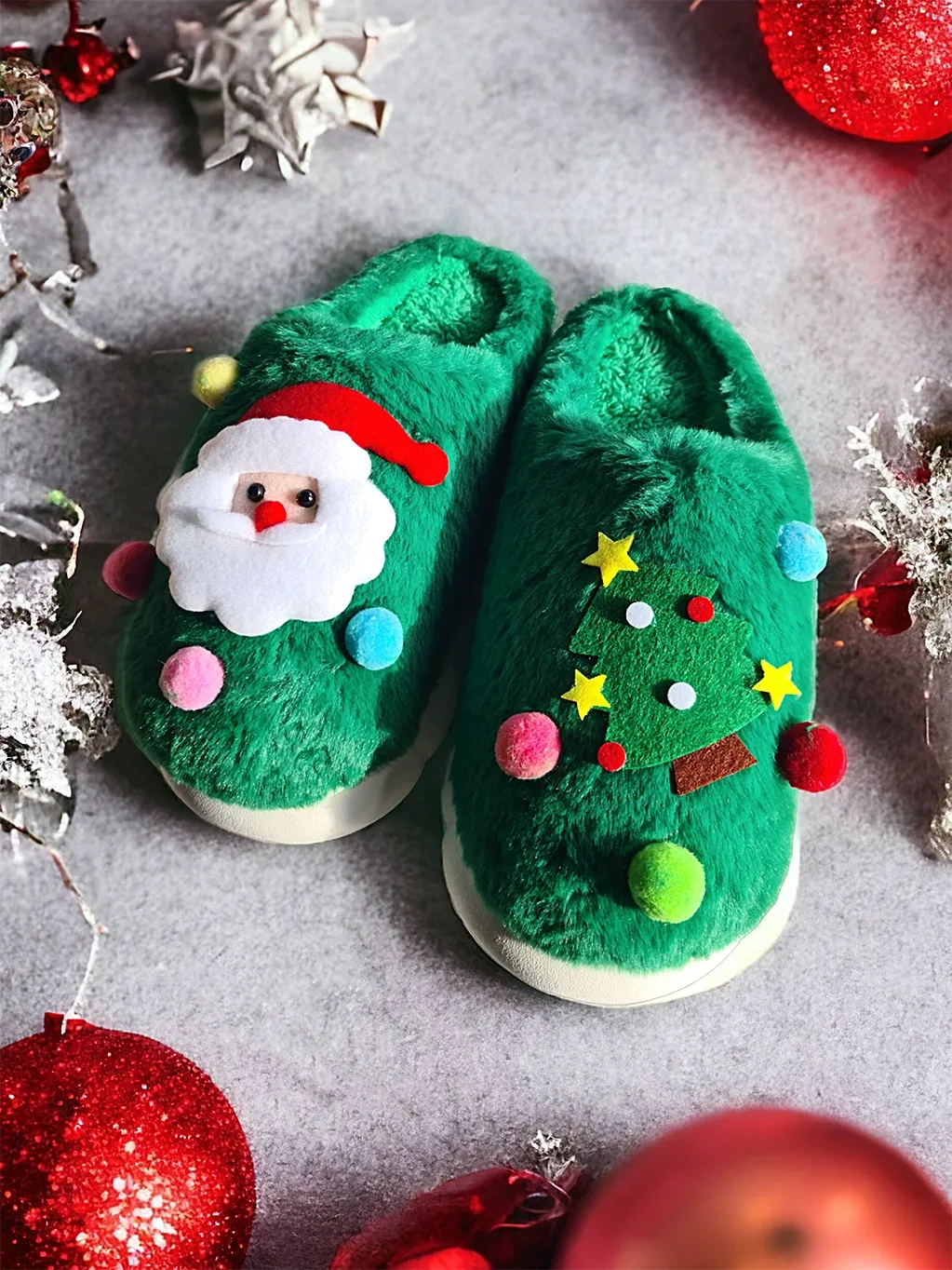 Damskie zielone kapcie świąteczne z choinką WS9037-7