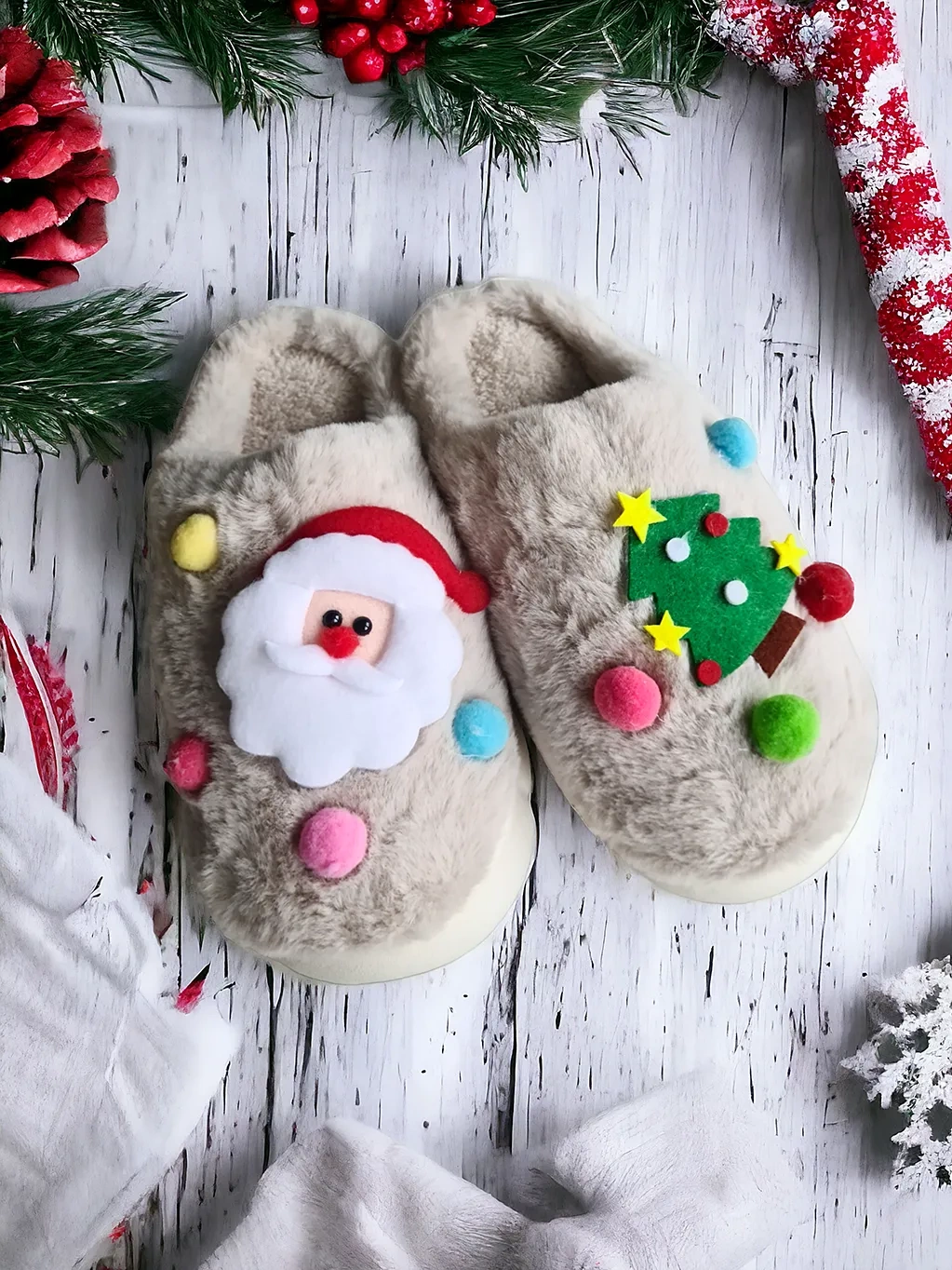 Damskie beżowe kapcie świąteczne z choinką WS9037-8