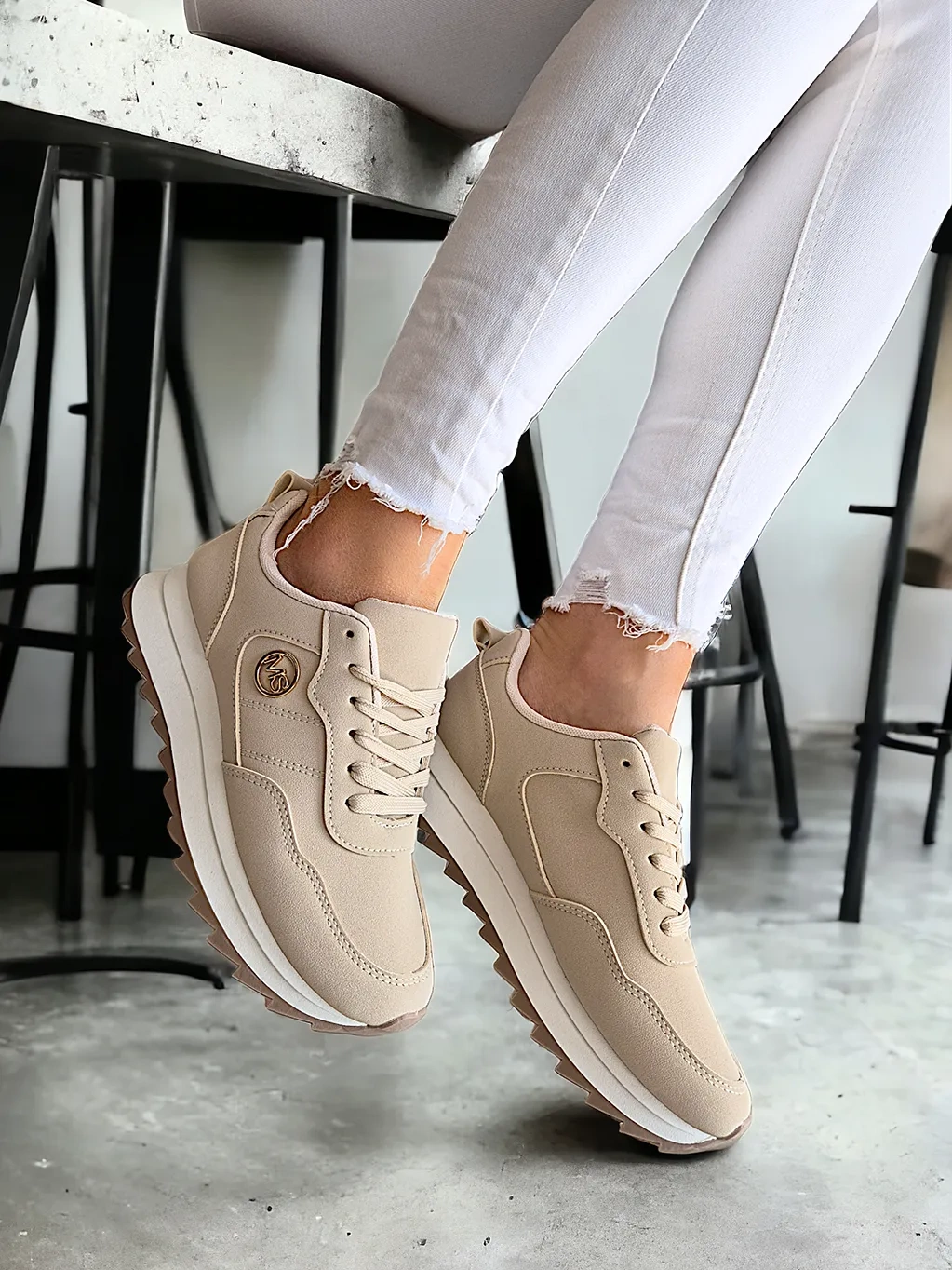 • Damskie buty sportowe, wykonane z eko-zamszu. Charakteryzują się wygodą i trwałością. Ich casualowy design sprawia, że są odpowiednie zarówno do codziennych, nieformalnych zestawów, jak i do bardziej eleganckich.