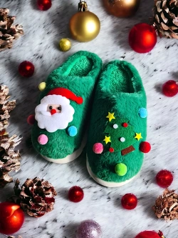 Damskie zielone kapcie świąteczne z choinką WS9037-7